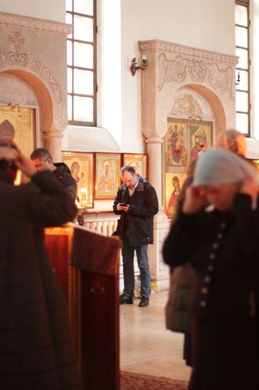 За великим повечерием молились многочисленные прихожане, сотрудники храма, пациенты Боткинской больницы, а также казаки — студенты Первого казачьего университета.