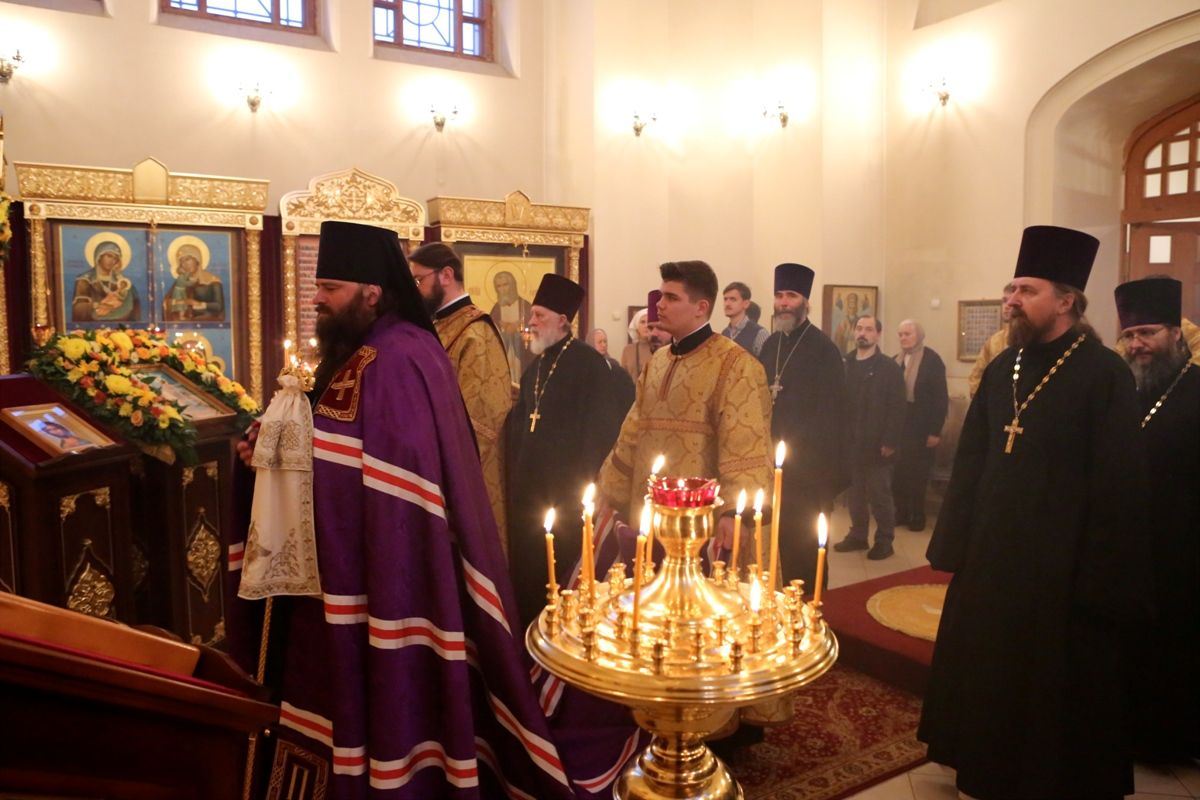 Его Преосвященству сослужили: протоиерей Сергий Дикий, благочинный Всехсвятского благочиния, настоятель храма св. вмч. Гергия Победоносца в Коптево; протоиерей Иоанн Кудрявцев, настоятель храма иконы Божией Матери «Отрада и Утешение» на Ходынском поле; протоиерей Василий Биксей, настоятель храма прп. Сергия Радонежского на Ходынском поле; протоиерей Владимир Леонов, настоятель храма прп. Андрея Рублева на Верхней Масловке; протоиерей Сергий Рождественский; иерей Александр Туманов; диакон Михаил Ремизов, диакон Александр Гарбуз.
