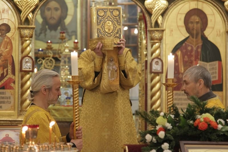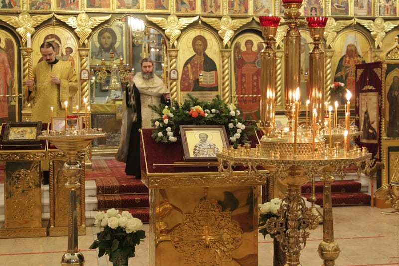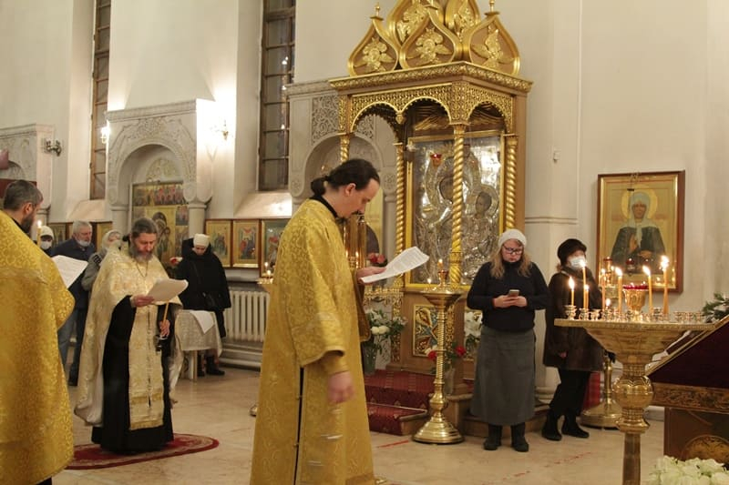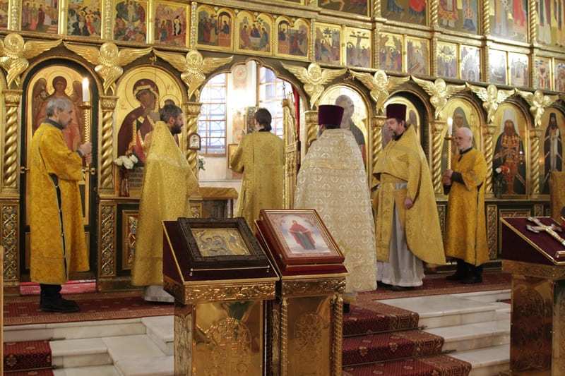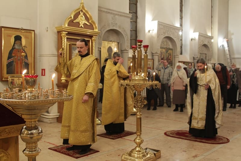 На вечерней службе состоялось пение акафиста святителю Иоанну Златоусту.