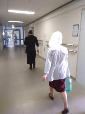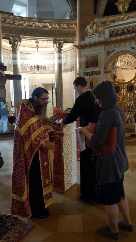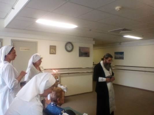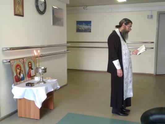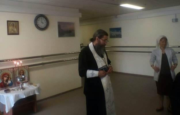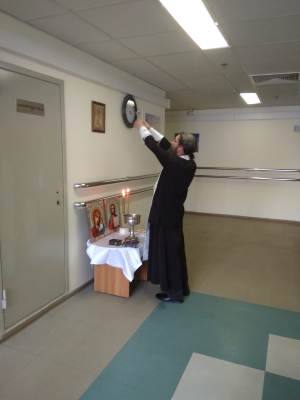 Сестры помогали пациентам и персоналу больницы подать записки о здравии, раздавали крестики и духовную литературу. После водосвятного молебна отец Иоанн обратился к собравшимся с пастырской проповедью, а затем с пением тропаря «Христос воскресе из мертвых» освятил палаты и служебные помещения. Все желающие смогли приступить к Таинству исповеди и побеседовать с батюшкой.