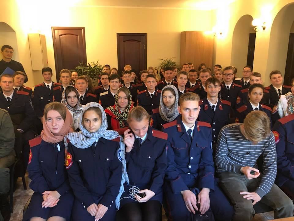 Встреча началась с богослужения в казачьем храме иконы Божией Матери «Отрада и Утешение» на Ходынском поле г. Москвы. Иерей Тимофей Чайкин совершил молебное пение перед началом всякого дела. Затем в помещении Синодального комитета состоялась беседа со студентами.