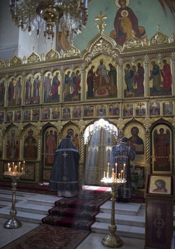 Его Высокопреосвященству сослужили: благочинный Всехсвятского округа, настоятель храма Георгия Победоносца в Коптево протоиерей Сергий Дикий; настоятель храма иконы Божией Матери «Отрада и Утешение» на Ходынском поле г. Москвы иерей Иоанн Кудрявцев и духовенство храма.