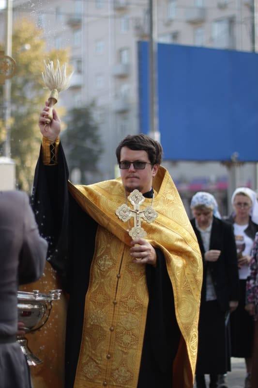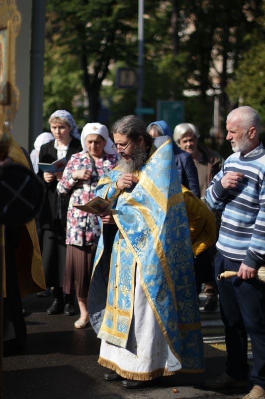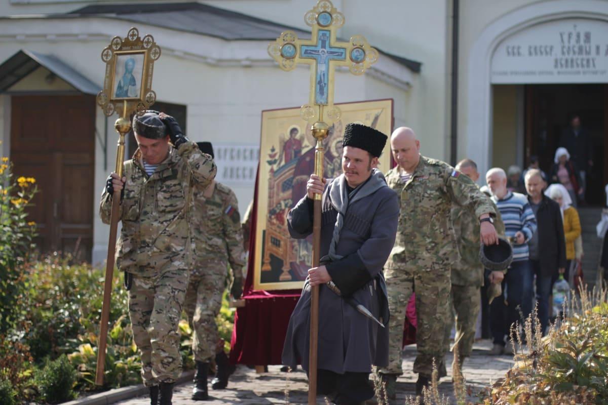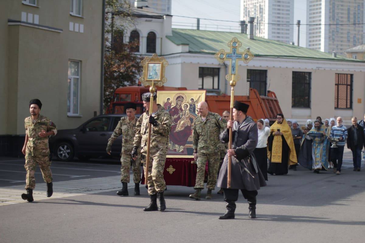 По окончании богослужения состоялся традиционный крестный ход с иконой Божией Матери «Всецарица». В нем приняли участие настоятель храма протоиерей Иоанн Кудрявцев, руководитель отдела по взаимодействию с епархиями и органами власти Синодального комитета по взаимодействию с казачеством иерей Иоанн Малков, казаки Казачьей Общины “Георгиевская”, сестры милосердия и прихожане.