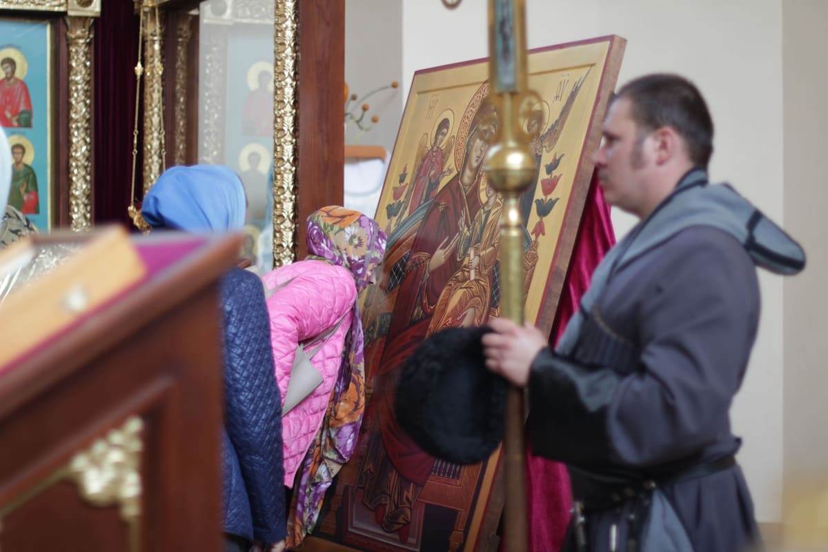 По окончании крестного хода духовенство и верующие имеют возможность поклониться чудотворному образу Матери Божией.