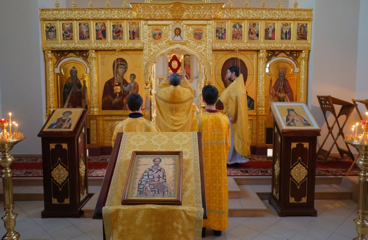 Божественная литургия в праздник перенесения мощей святителя Иоанна Златоуста, тезоименитство настоятеля казачьего храма иконы Божией Матери «Отрада и Утешение» на Ходынском поле г. Москвы