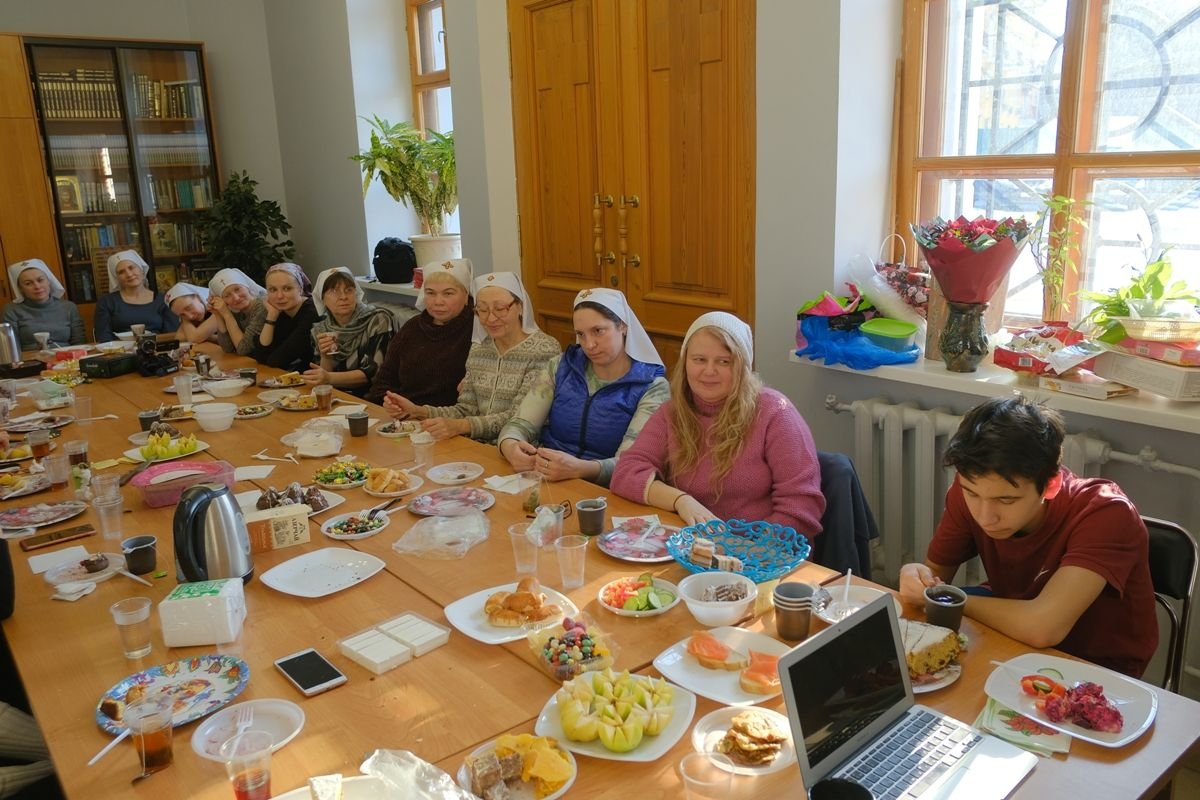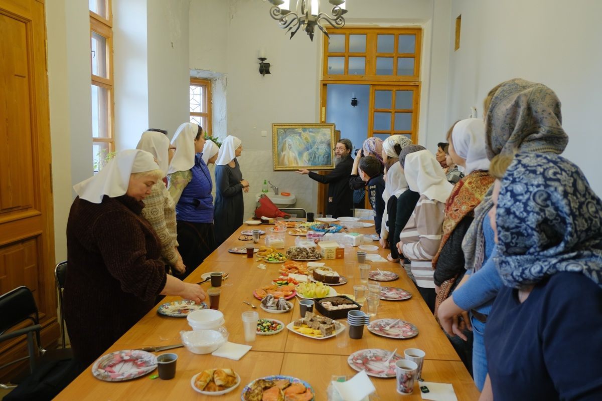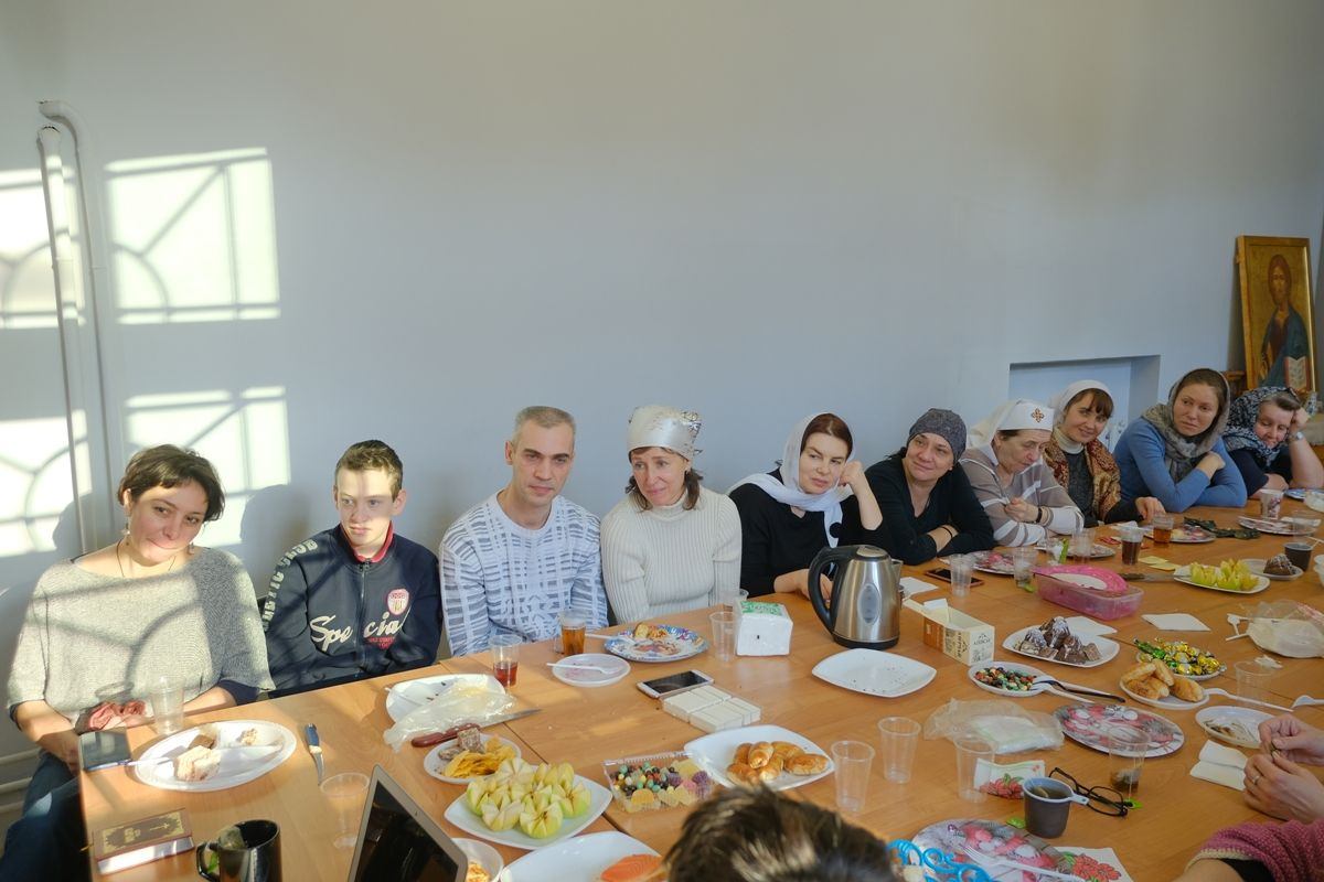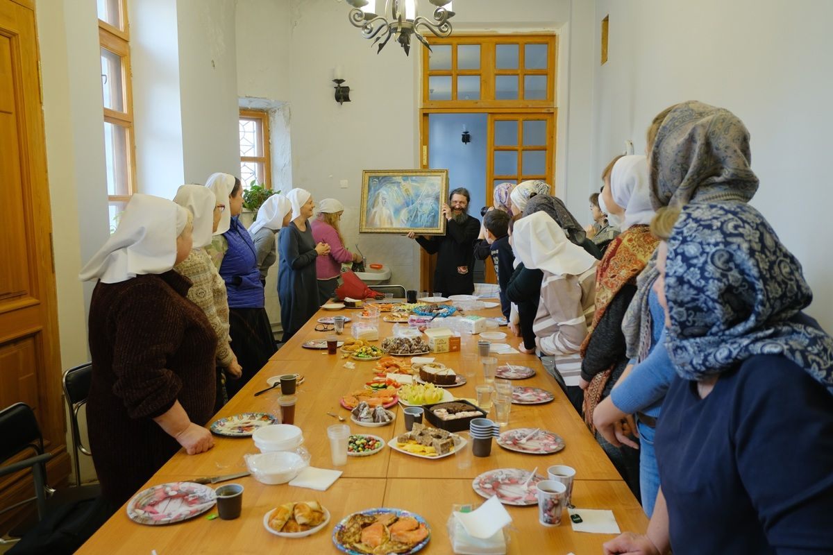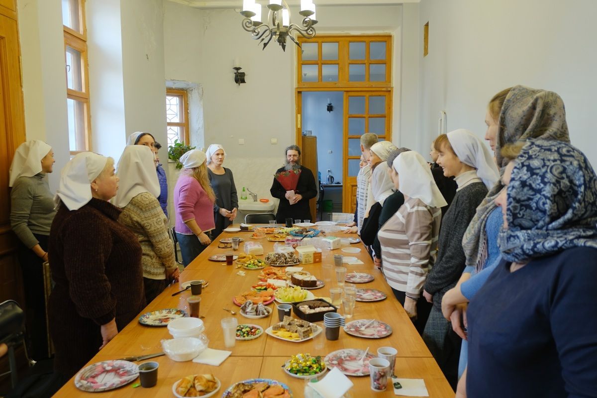 После Божественной литургии состоялось собрание сестричества милосердия и праздничное чаепитие. На собрании сестры ещё раз поздравили дорогого батюшку с праздником и вручили подарок от сестричества — картину с изображением святой преподобномученицы Елисаветы Феодоровны Романовой, написанную специально для батюшки сестрой милосердия Натальей. За чаепитием состоялась беседа о толковании на воскресное Евангельское чтение.