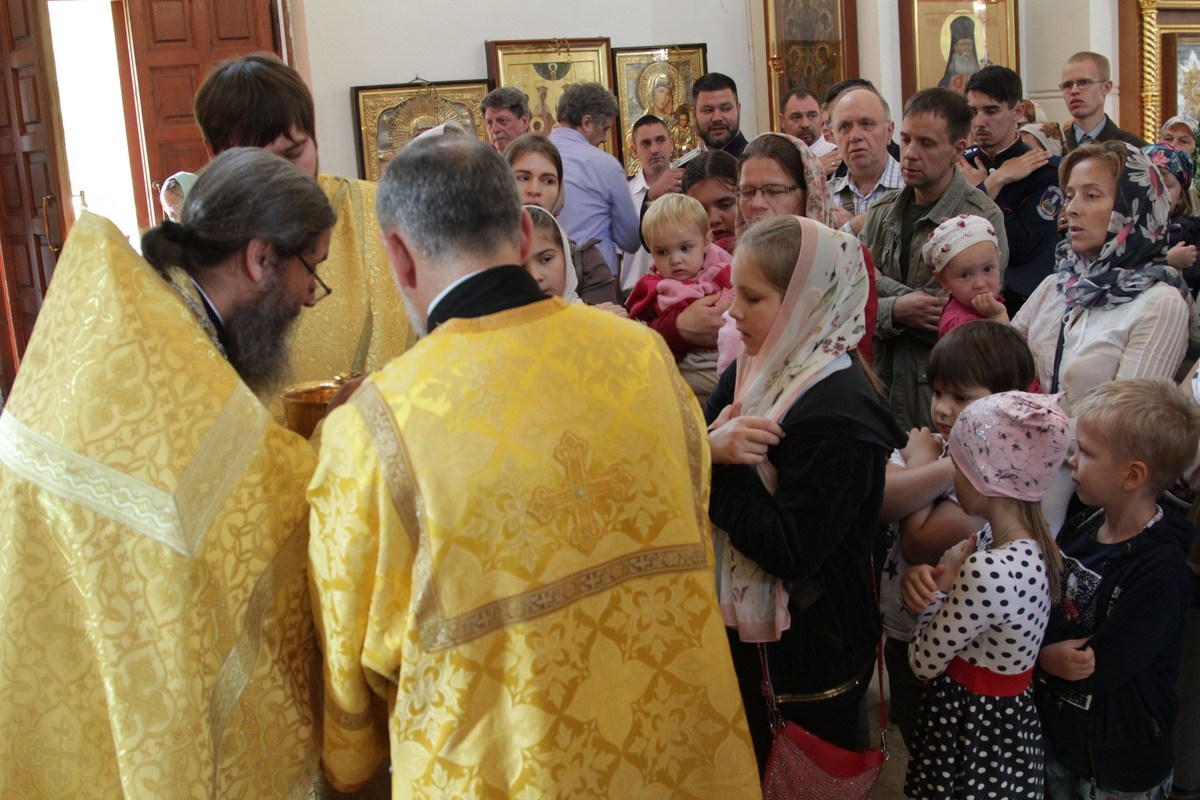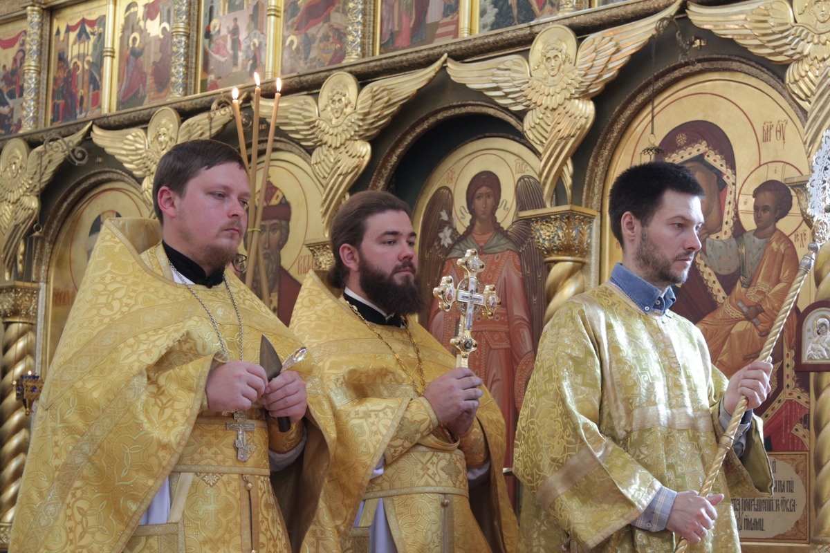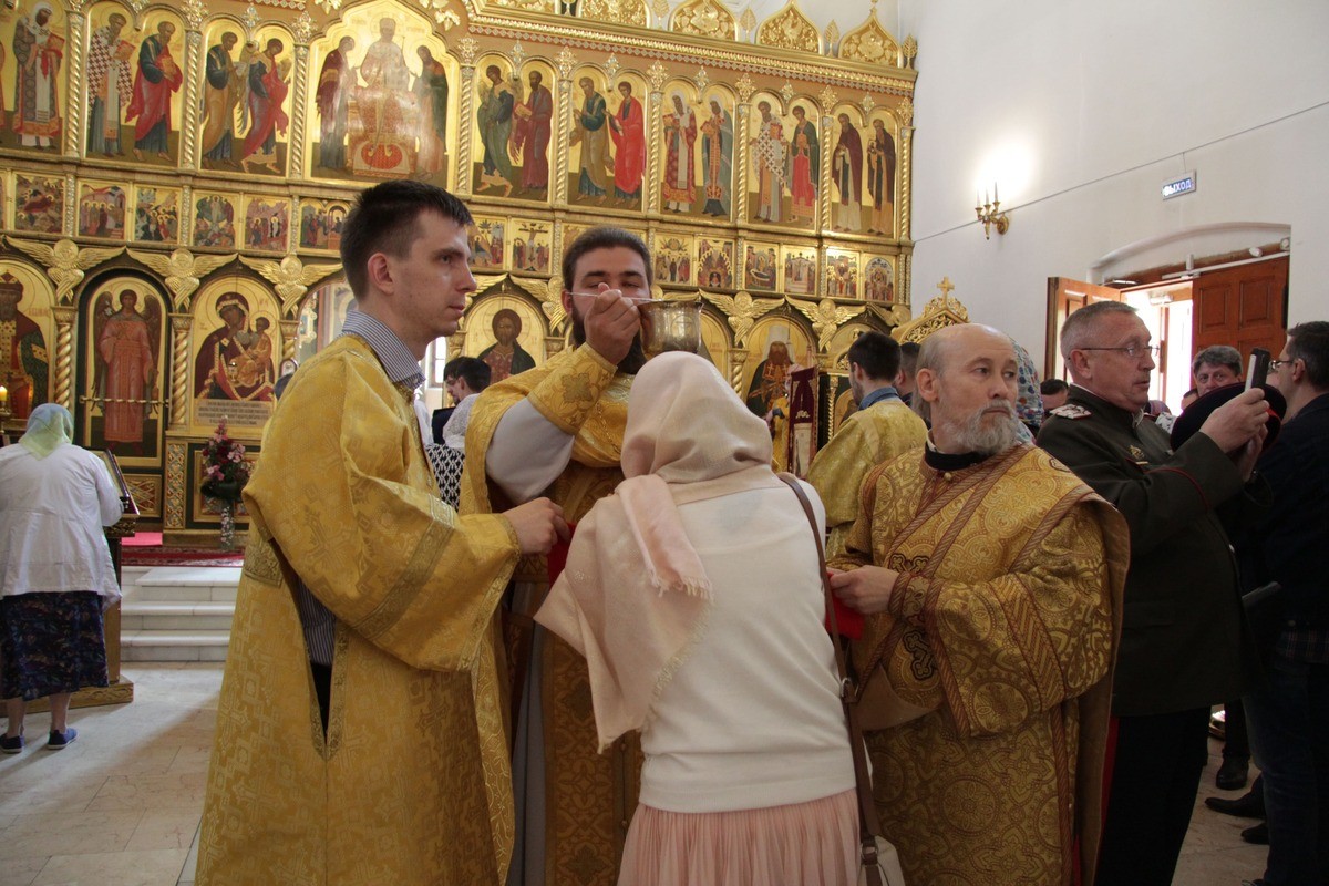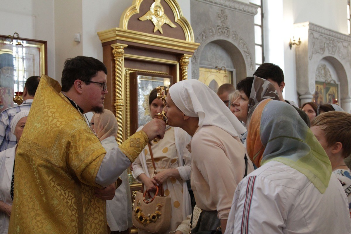 После встречи святынь состоялась Божественная литургия, которую возглавил председатель Синодального комитета Русской Православной Церкви по взаимодействию с казачеством митрополит Ставропольский и Невинномысский Кирилл. Ему сослужили настоятель храма протоиерей Иоанн Кудрявцев, ответственный секретарь Синодального комитета иерей Тимофей Чайкин, руководитель отдела по взаимодействию с епархиями и органами власти Синодального комитета иерей Иоанн Малков и иерей Тихон Лазуткин. В богослужении приняли участие вице-президент благотворительного фонда св. мч. Вонифатия Наталья Мезенцева, представители казачества, профессорско-преподавательский состав и студенты Первого казачьего университета, прихожане храма.