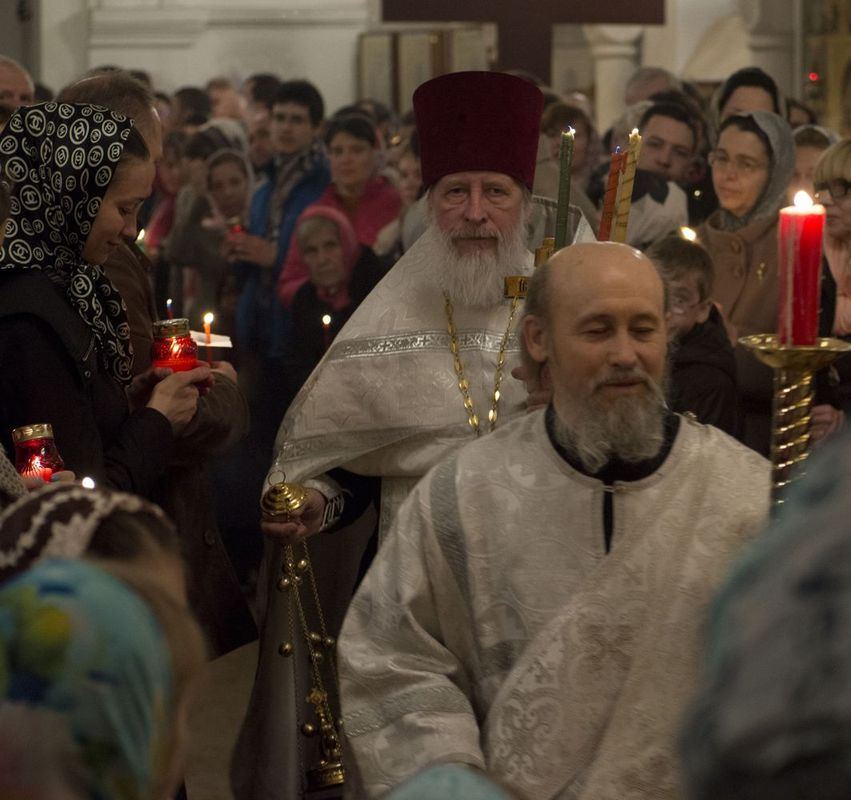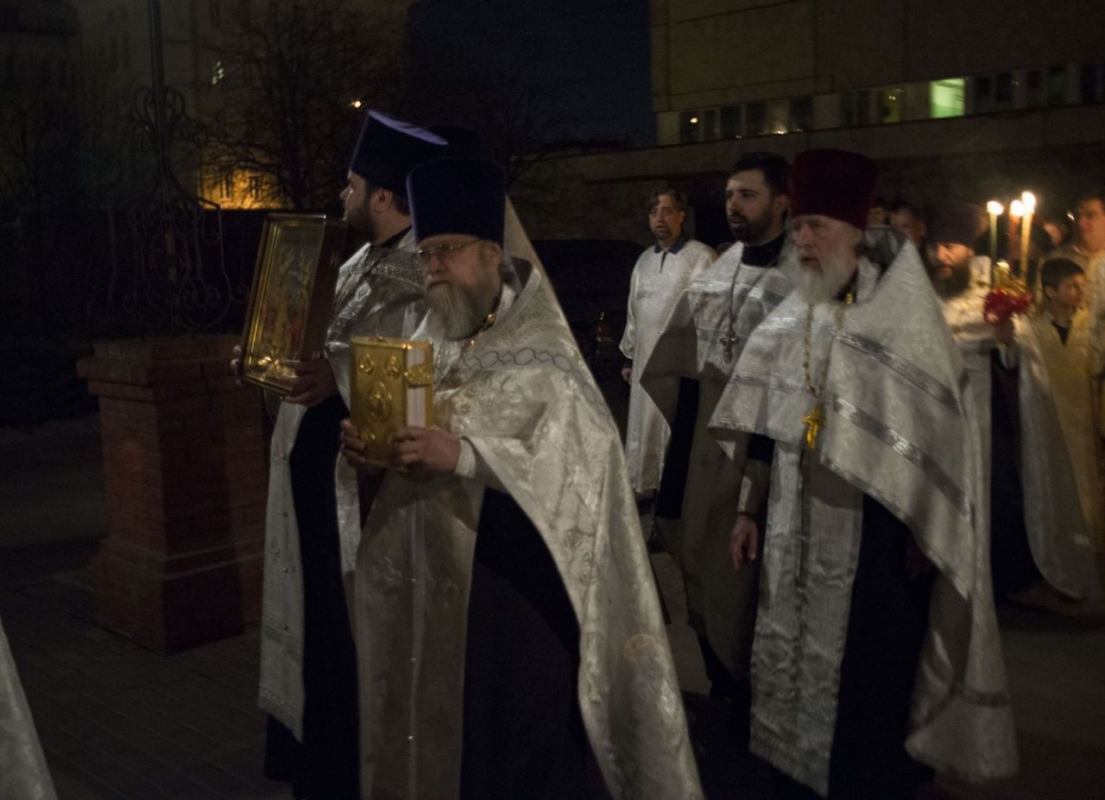 Богослужение в Пасхальную ночь совершил настоятель храма протоиерей Иоанн Кудрявцев в сослужении клириков храма. Множество народа пришло помолиться в эту ночь в храм. Ещё больше верующих участвовало в Пасхальном крестном ходе. Многие прихожане приступили к Таинствам исповеди и причастия Святых Христовых Таин.