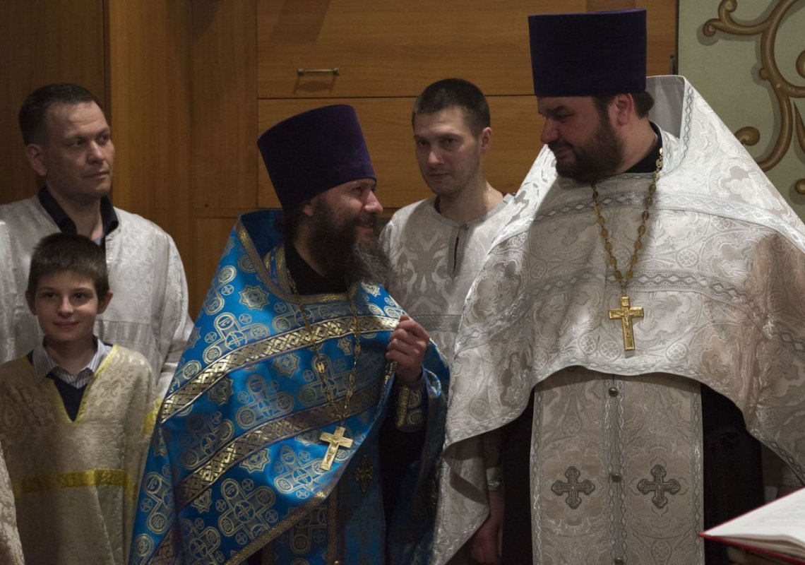 12 апреля 2015 года в храме иконы Божией Матери «Отрада и Утешение» на Ходынском поле г. Москвы отпрадновали Светлое Христово Воскресение — Пасху.