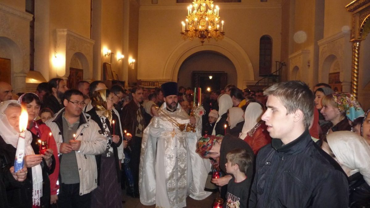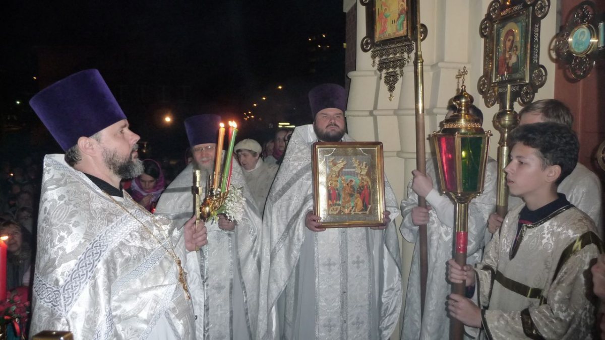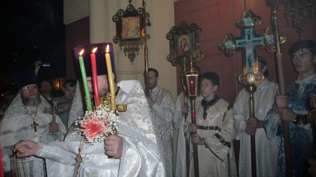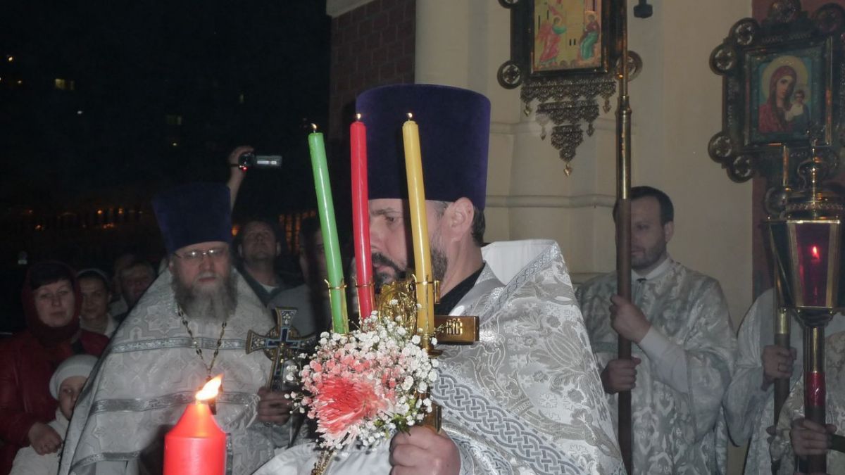 Пасхальное ночное богослужение возглавил настоятель храма протоиерей Георгий Изай.