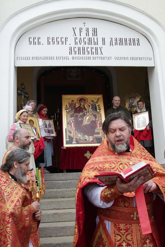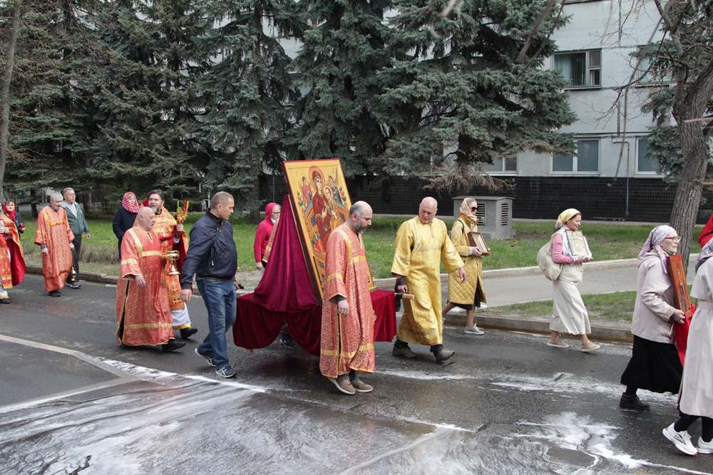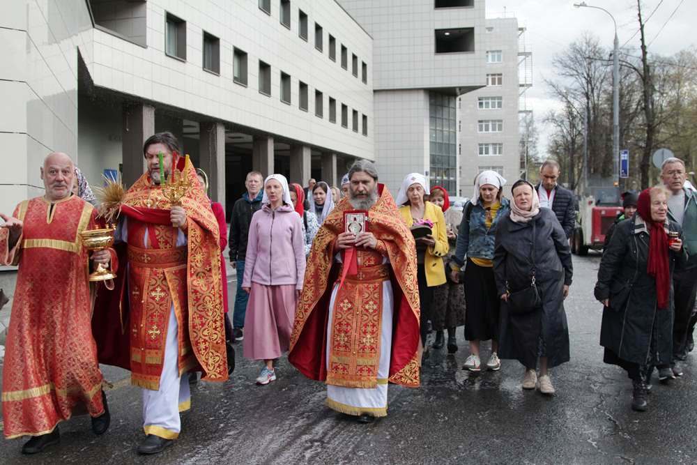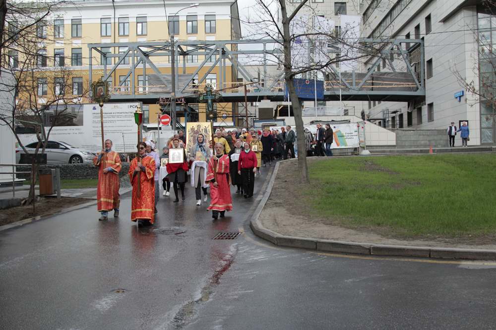Крестный ход состоялся после Божественной литургии в храме свв. бесср. Космы и Дамиана Асийских, приписном к казачьему храму иконы Божией Матери «Отрада и Утешение» на Ходынском поле г. Москвы. Божественную литургию и крестный ход возглавил настоятель храма протоиерей Иоанн Кудрявцев. Отцу-настоятелю сослужил клирик храма протоиерей Борис Ланчиков. В крестном ходе приняли участие прихожане, сотрудники храма, сёстры милосердия, сотрудники Боткинской больницы.