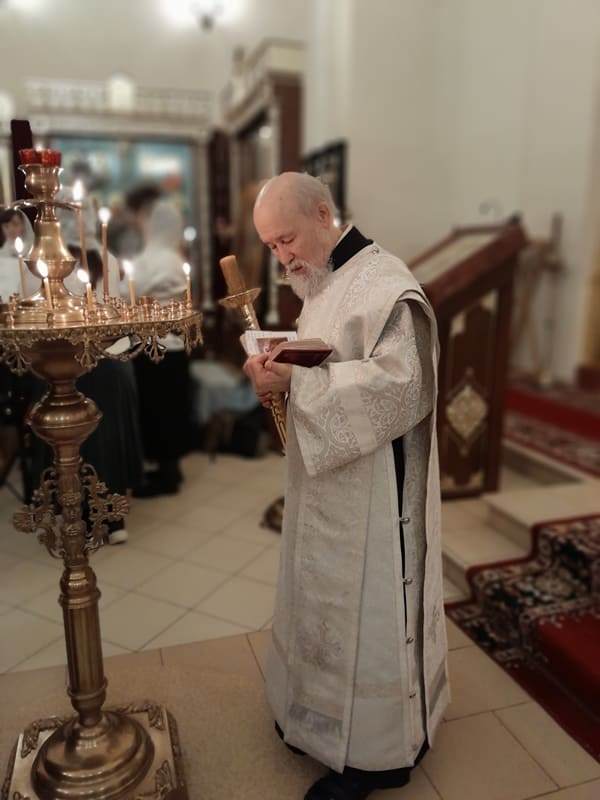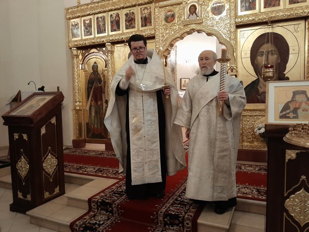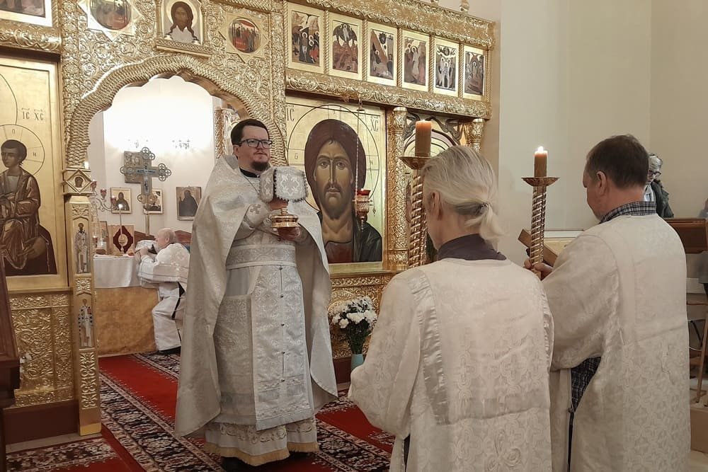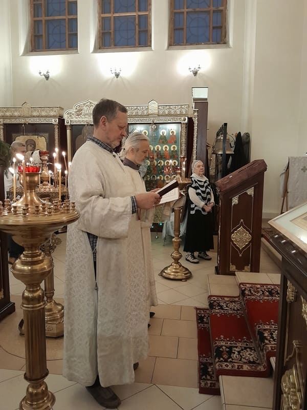 Ночное богослужение возглавил настоятель храма протоиерей Иоанн Кудрявцев, вторую Божественную литургию совершил клирик нашего храма иерей Александр Туманов.