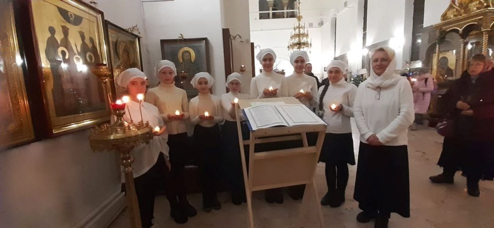 Песнопения на утренней литургии прозвучали в исполнении народного хора и детского хора нашего храма.