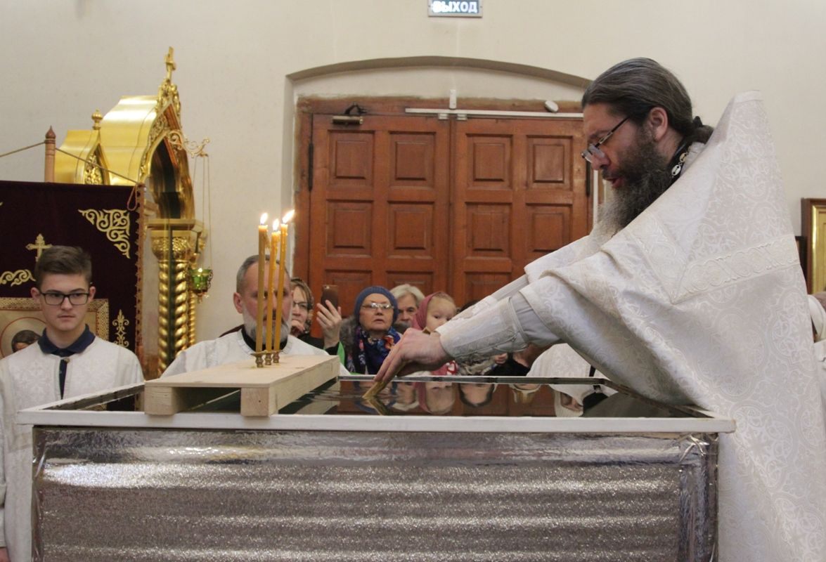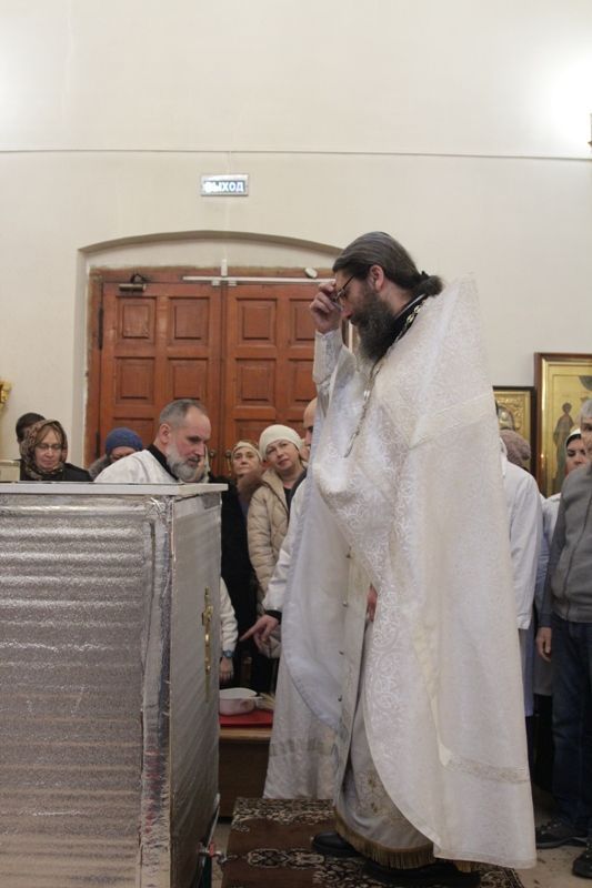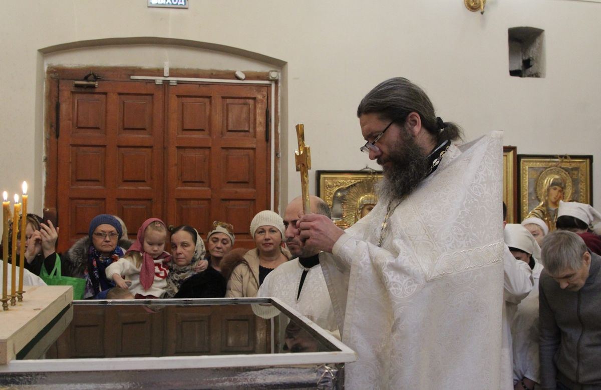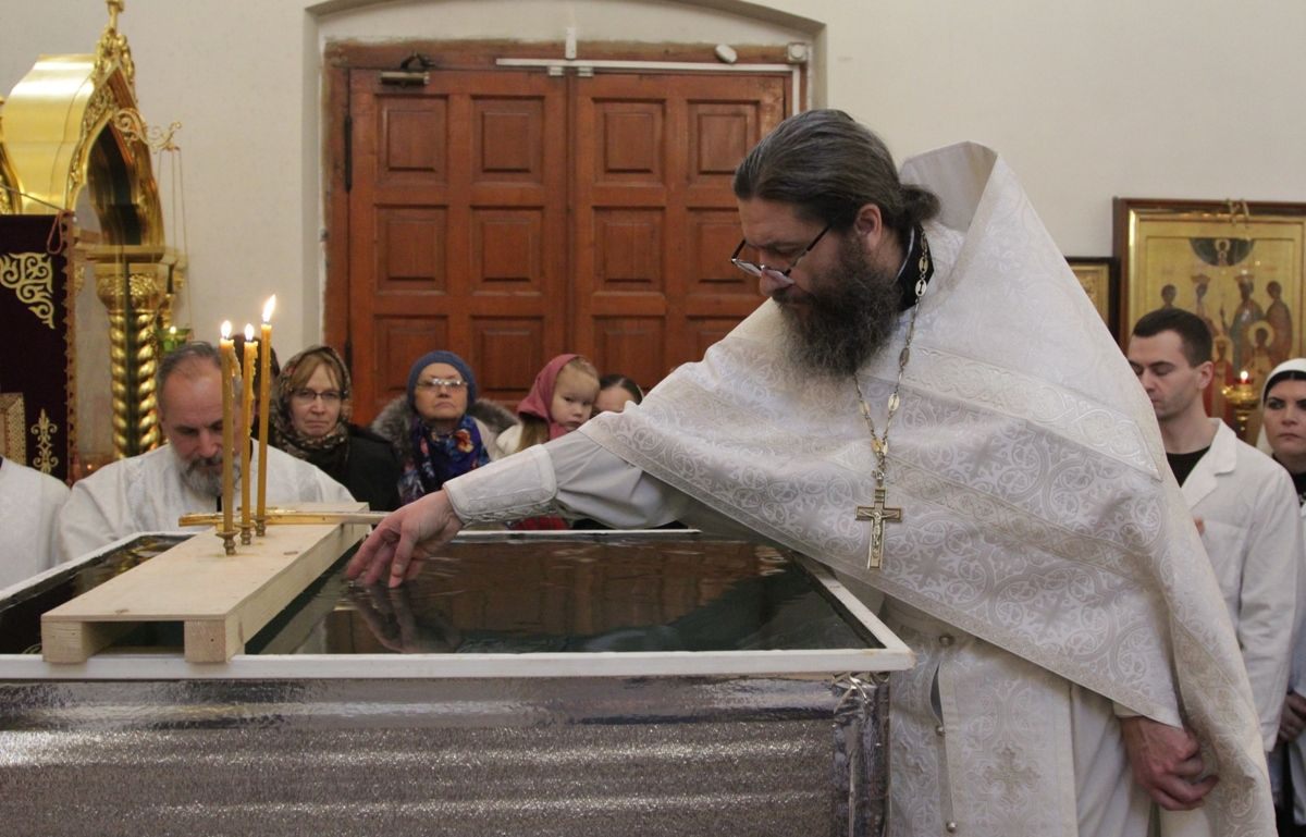 Позднюю Божественную литургию совершил настоятель храма протоиерей Иоанн Кудрявцев в сослужении клириков храма: протоиерея Владимира Купарева, протоиерея Владимира Ланчикова, иерея Алексанлдра Туманова, диакона Александра Гарбуза. После литургии состоялось великое освящение воды. Затем отец-настоятель обратился к верующим с пастырской проповедью.