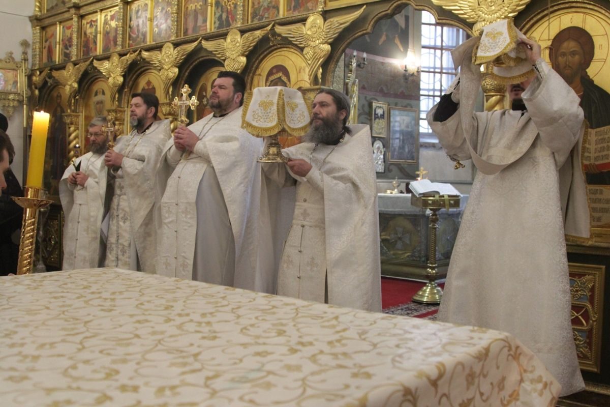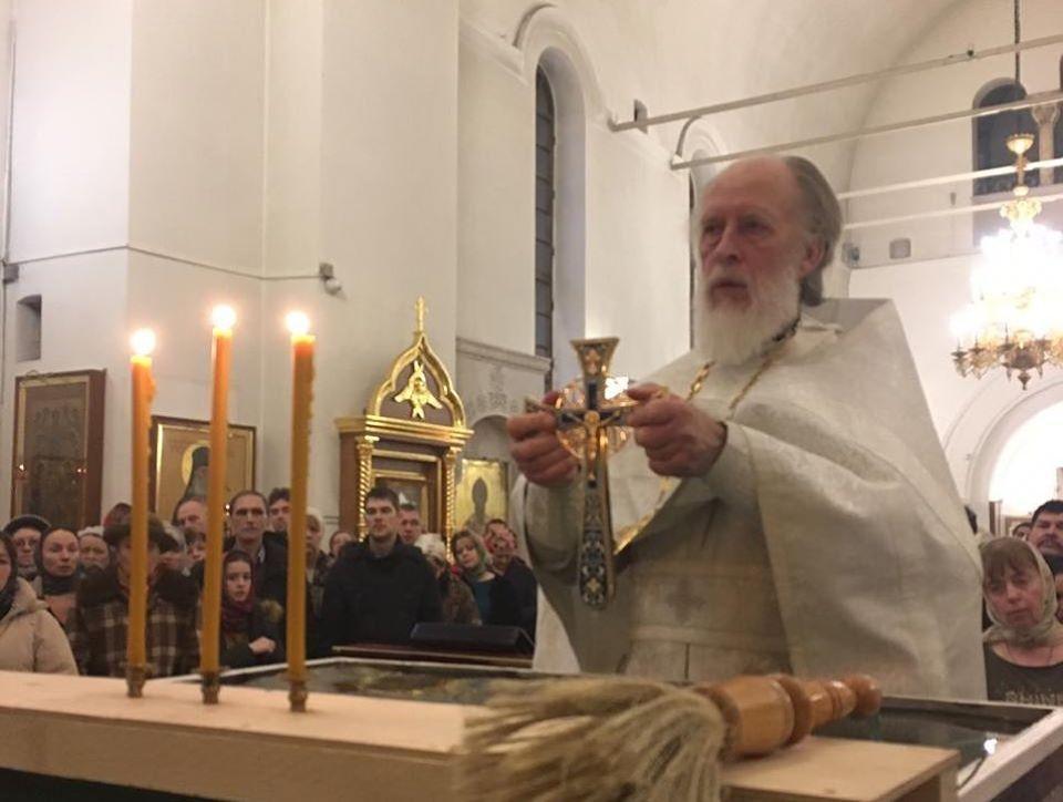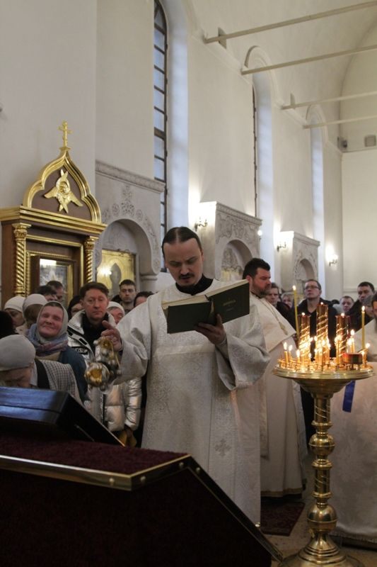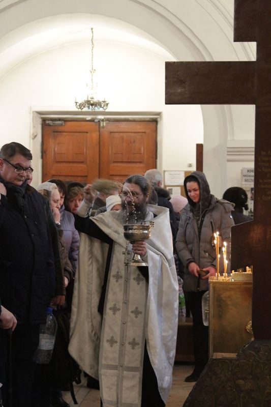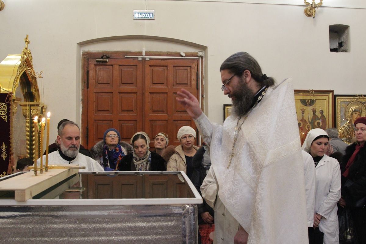 Позднюю Божественную литургию совершил настоятель храма протоиерей Иоанн Кудрявцев в сослужении клириков храма: протоиерея Владимира Купарева, протоиерея Владимира Ланчикова, иерея Алексанлдра Туманова, диакона Александра Гарбуза. После литургии состоялось великое освящение воды. Затем отец-настоятель обратился к верующим с пастырской проповедью.