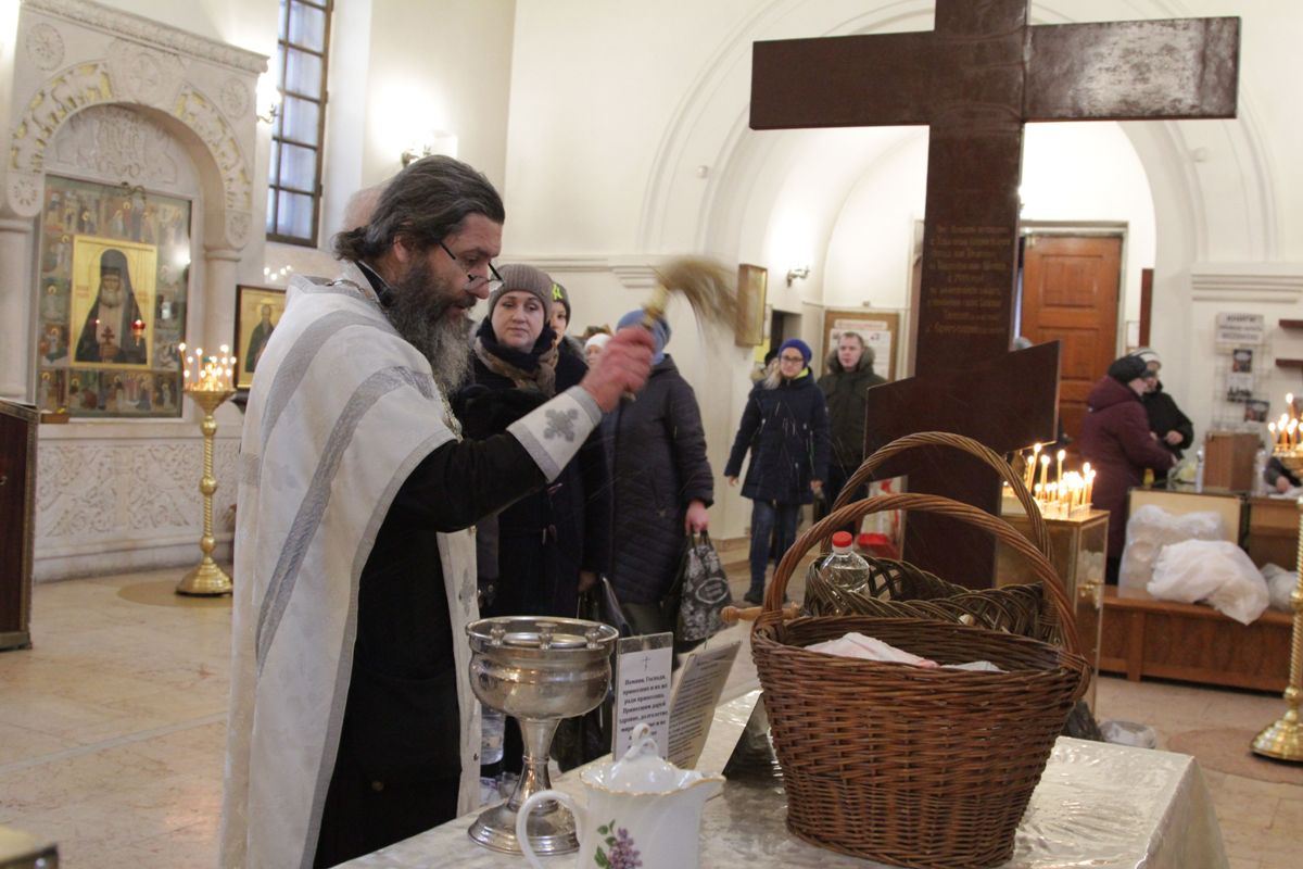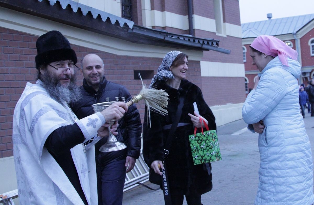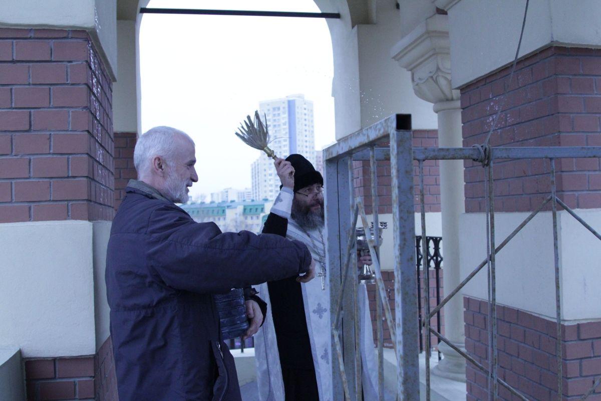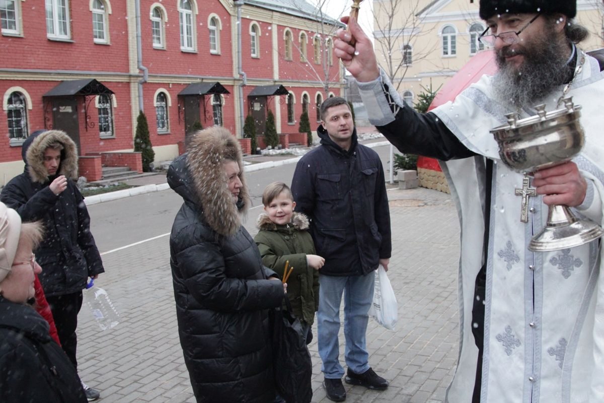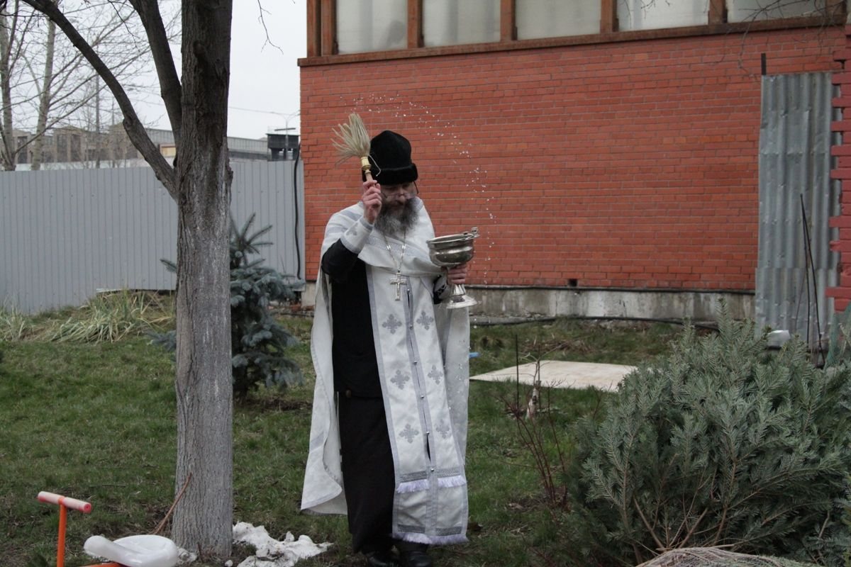 По окончании богослужения настоятель храма протоиерей Иоанн Кудрявцев окропил храм, подсобные помещения и территорию святой Крещенской водой.