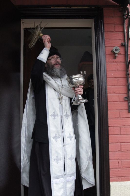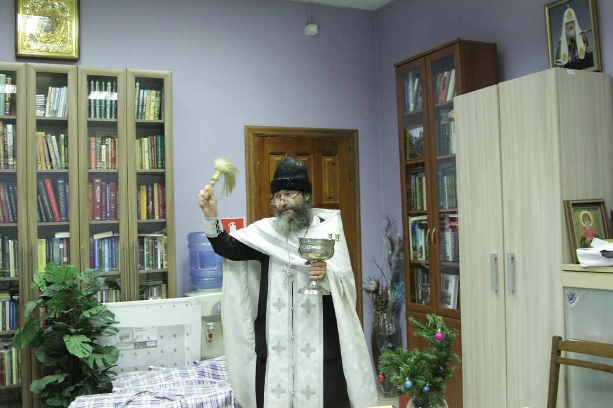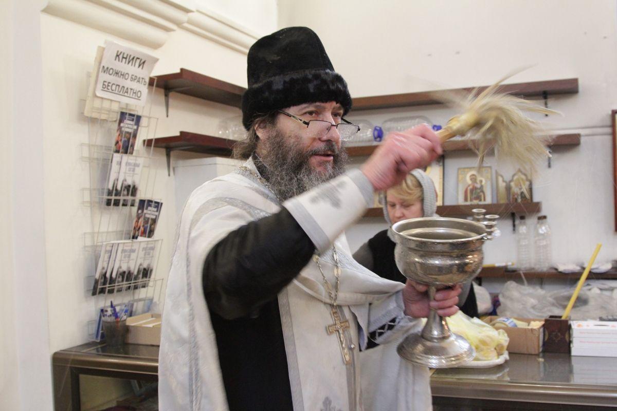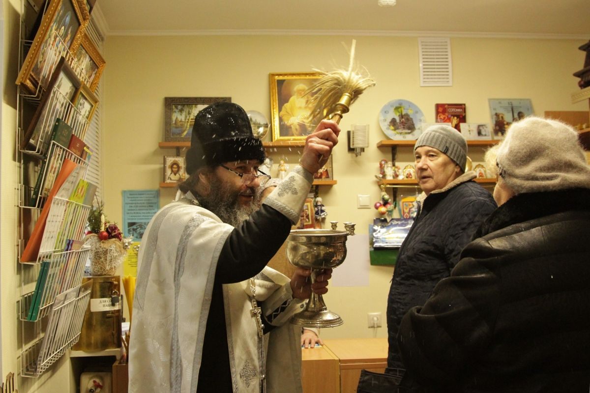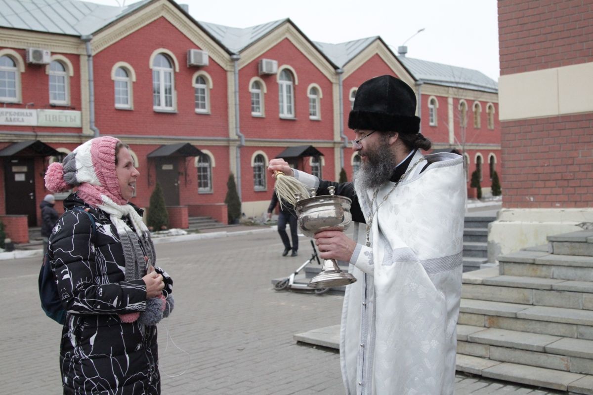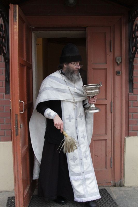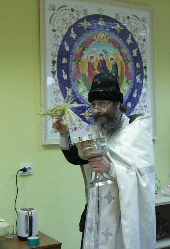 По окончании богослужения настоятель храма протоиерей Иоанн Кудрявцев окропил храм, подсобные помещения и территорию святой Крещенской водой.