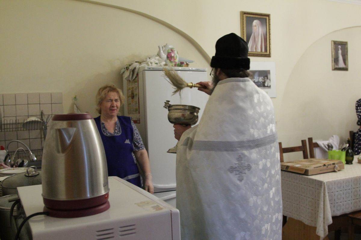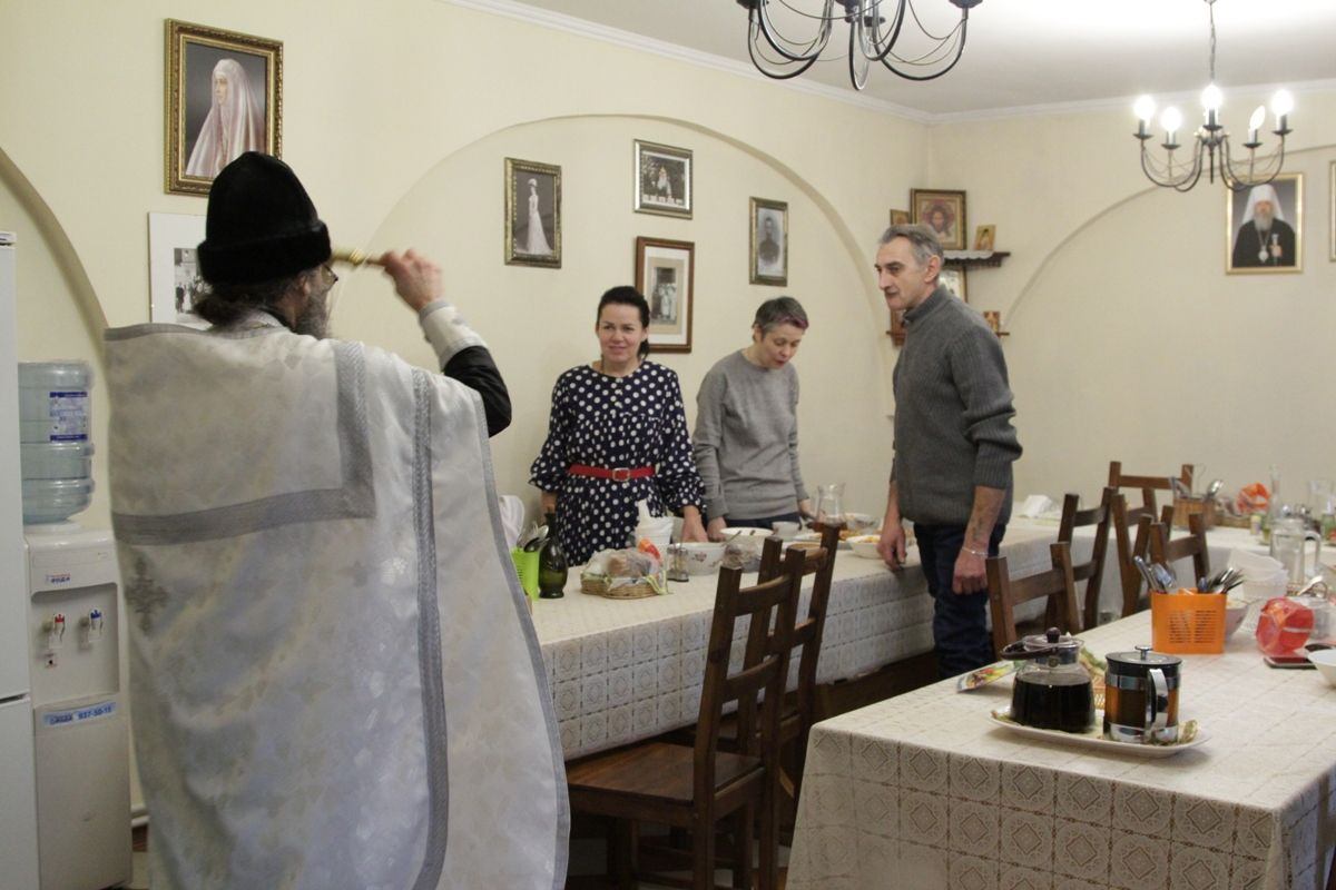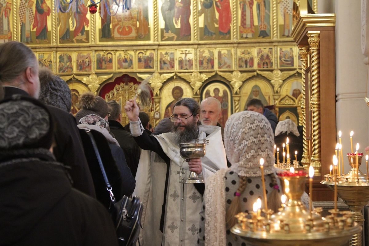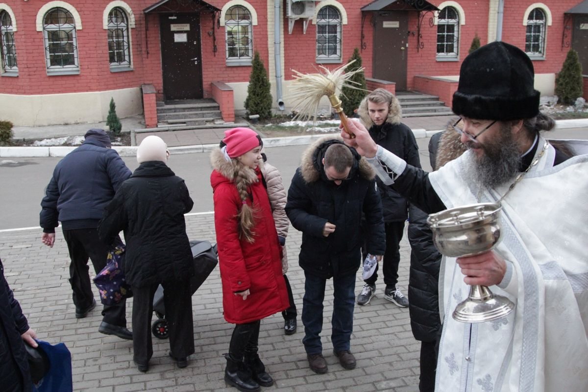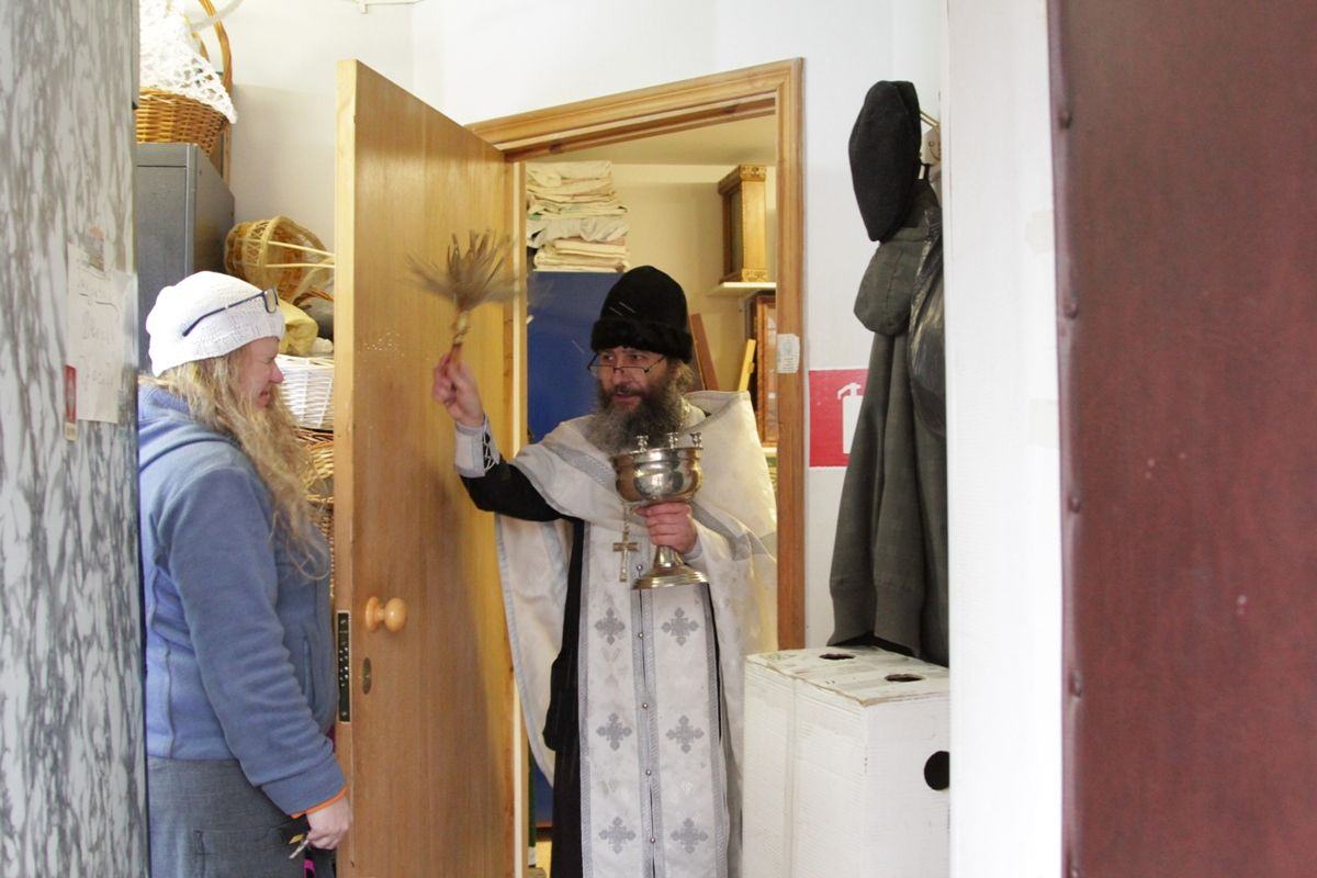 По окончании богослужения настоятель храма протоиерей Иоанн Кудрявцев окропил храм, подсобные помещения и территорию святой Крещенской водой.