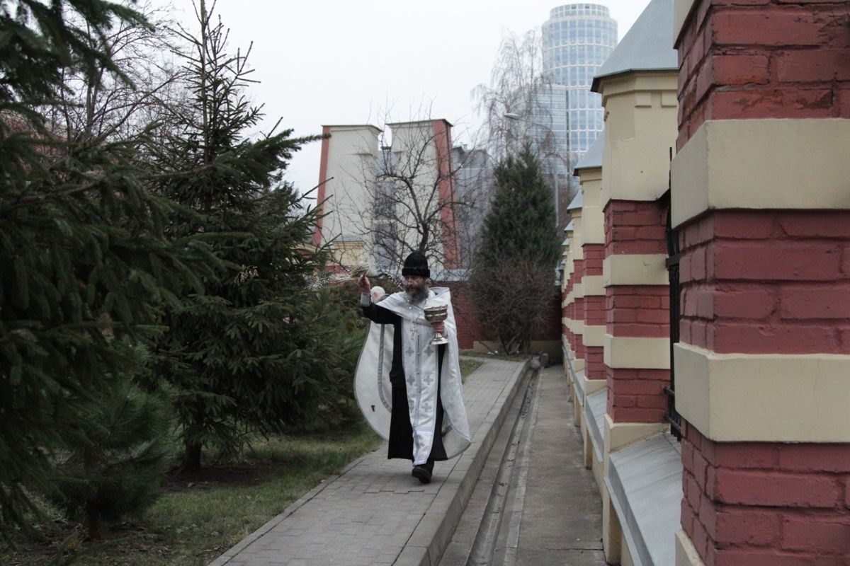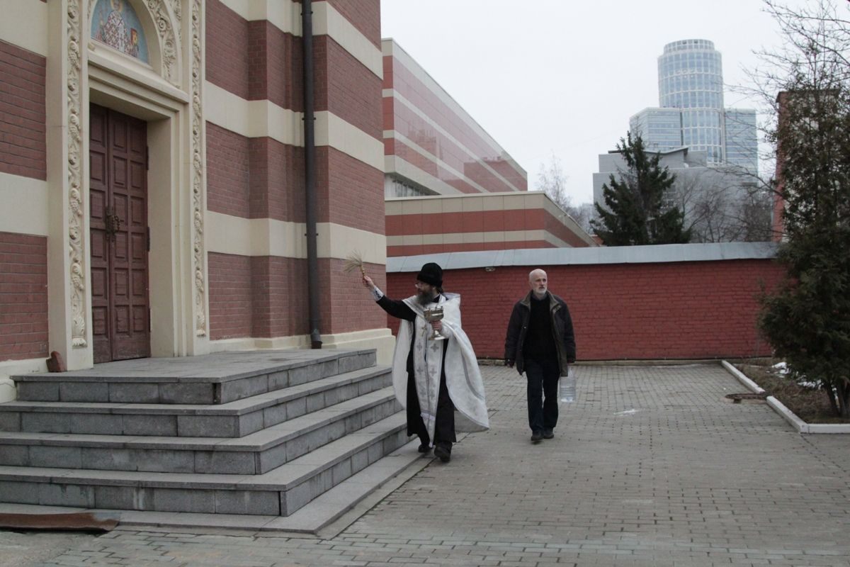 Поздняя Божественная литургия. Фото: Вера Андросова Окропление храма и территории. Фото: Вера Андросова