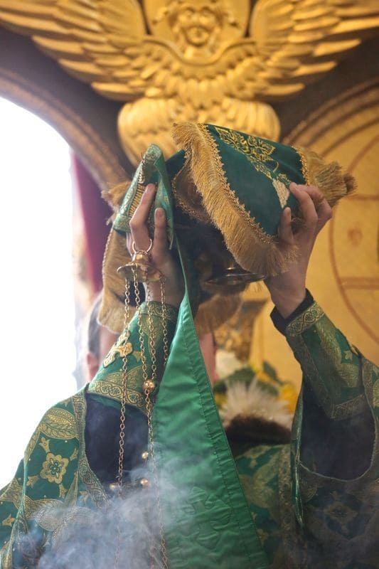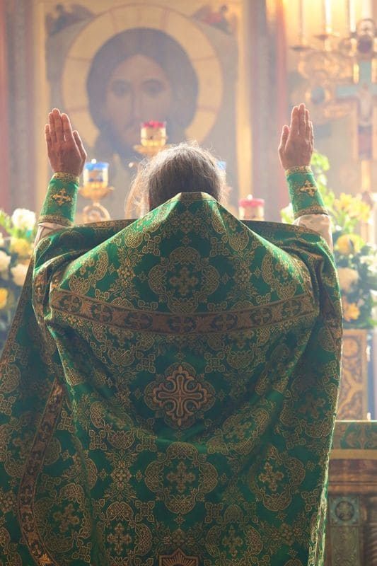 По окончании Божественной литургии была совершена вечерня с чтением коленопреклоненных молитв.