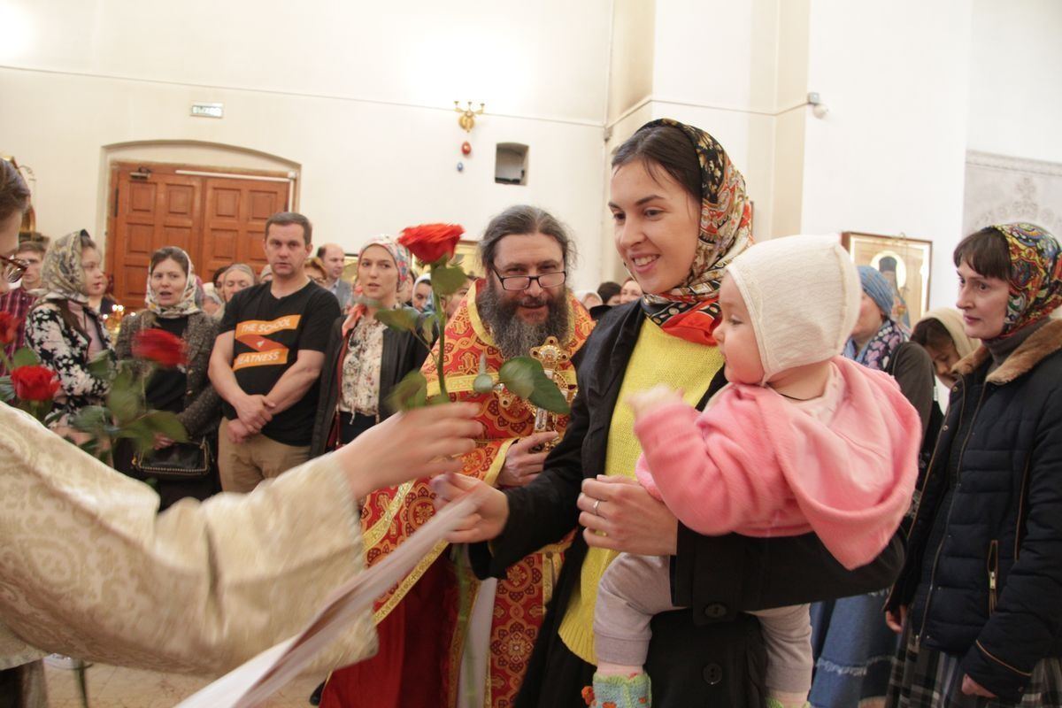 По окончании богослужения отец-настоятель тепло поздравил всех сестер-прихожанок с православным женским днем. Затем всем сестрам, даже самым маленьким, подарили цветы.