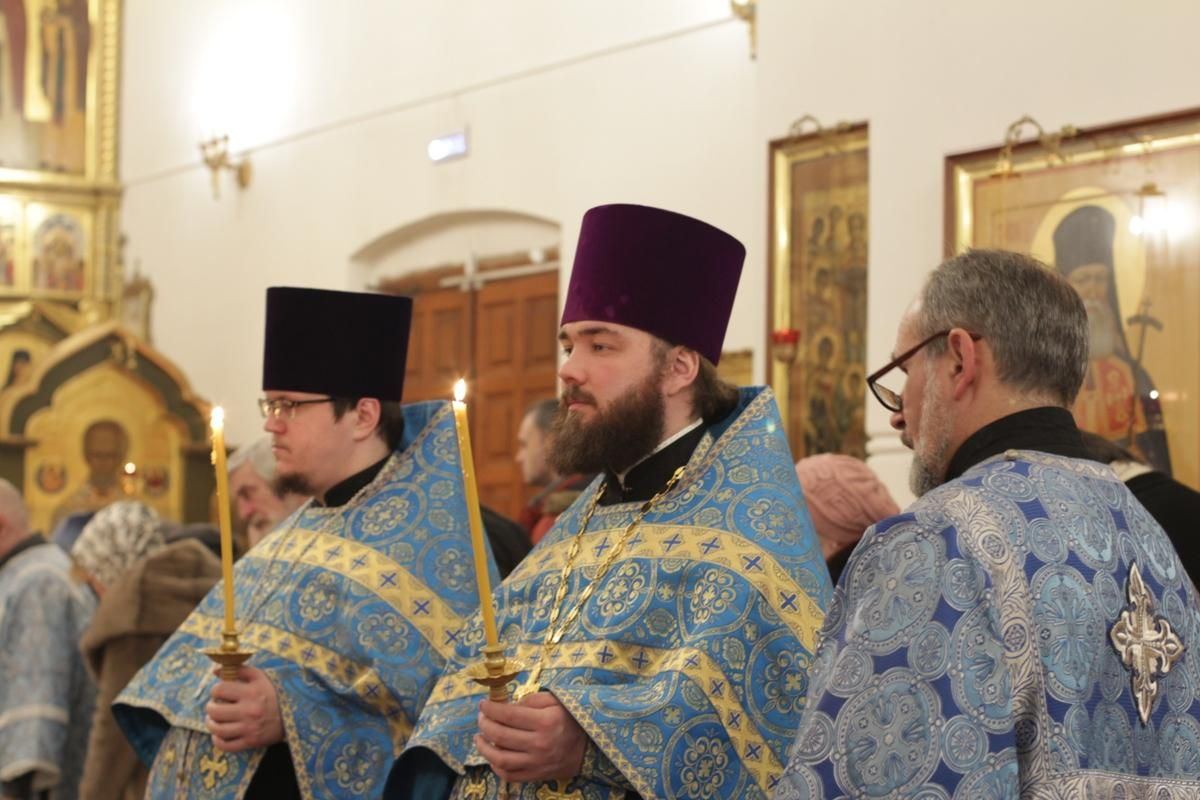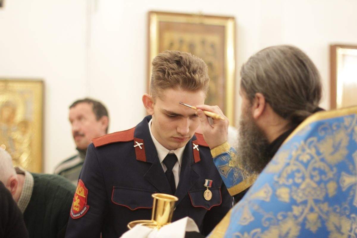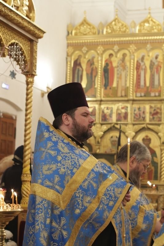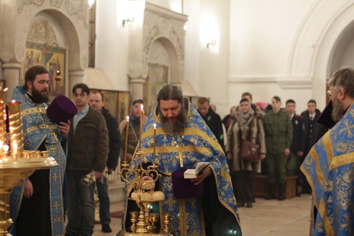 Вечернее богослужение возглавил настоятель храма протоиерей Иоанн Кудрявцев в сослужении духовенства храма: протоиерея Владимира Купарева; иерея Тимофея Чайкина, ответственного секретаря Синодального комитета по взаимодействию с казачеством; иерея Иоанна Малкова, специалиста отдела по взаимодействию с епархиями и органами власти СКВК; иерея Александра Туманова; диакона Александра Гарбуза.