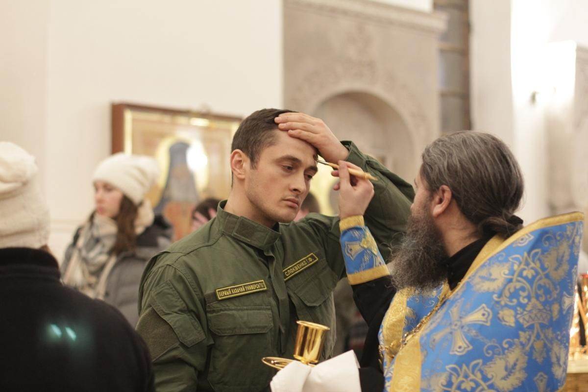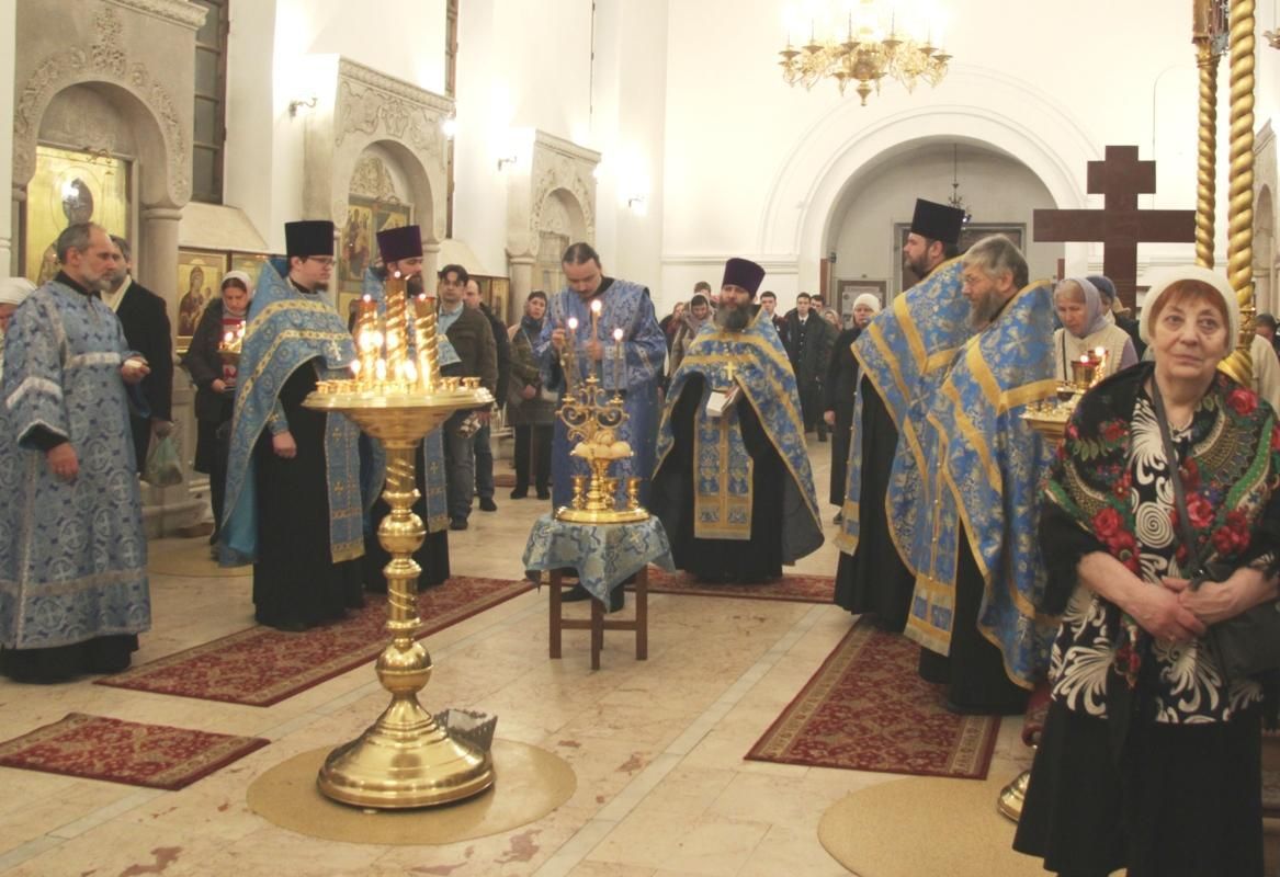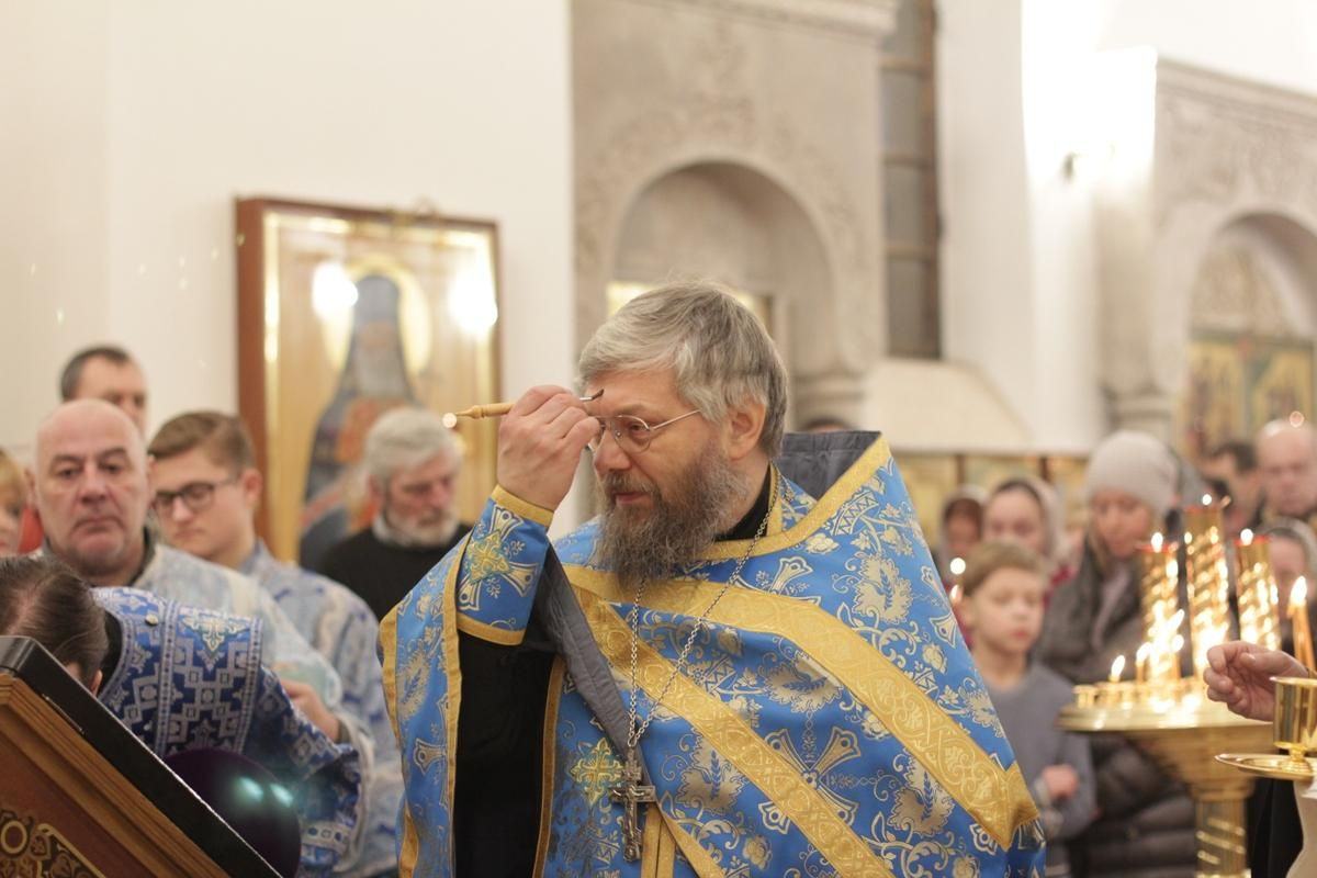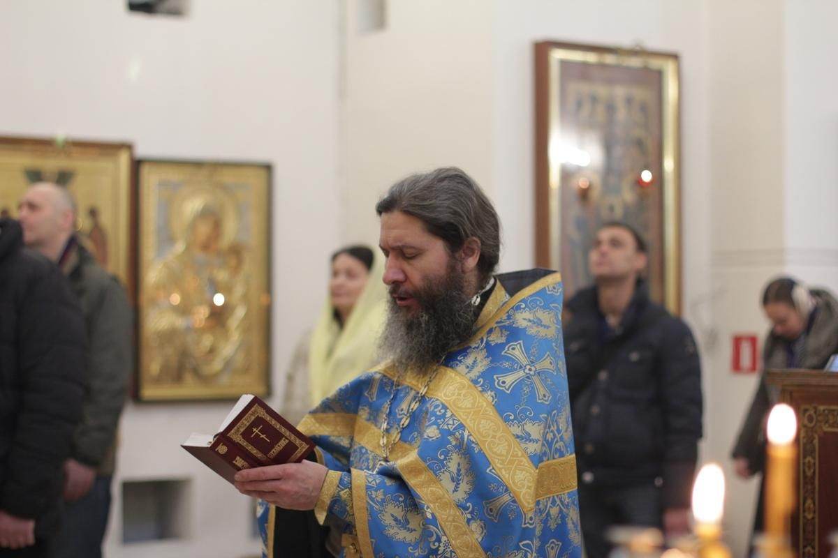 Вечернее богослужение возглавил настоятель храма протоиерей Иоанн Кудрявцев в сослужении духовенства храма: протоиерея Владимира Купарева; иерея Тимофея Чайкина, ответственного секретаря Синодального комитета по взаимодействию с казачеством; иерея Иоанна Малкова, специалиста отдела по взаимодействию с епархиями и органами власти СКВК; иерея Александра Туманова; диакона Александра Гарбуза.