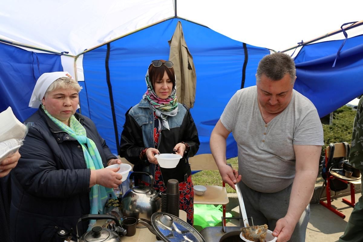 По окончании богослужения во дворе храма состоялись народные гулянья. Воскресной школой была организована благотворительная ярмарка. Работала полевая кухня. Угощение по благословению настоятеля приготовили и раздавали сестры милосердия нашего прихода.