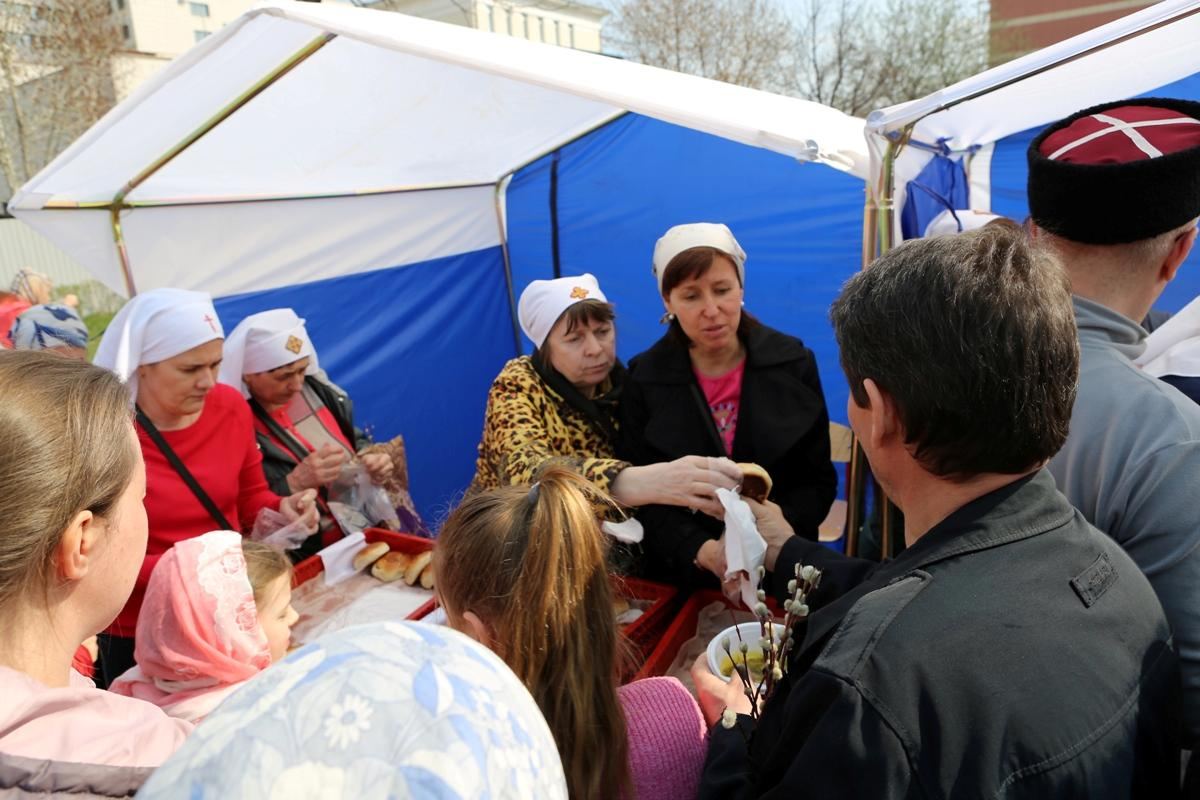 По окончании богослужения во дворе храма состоялись народные гулянья. Воскресной школой была организована благотворительная ярмарка. Работала полевая кухня. Угощение по благословению настоятеля приготовили и раздавали сестры милосердия нашего прихода.