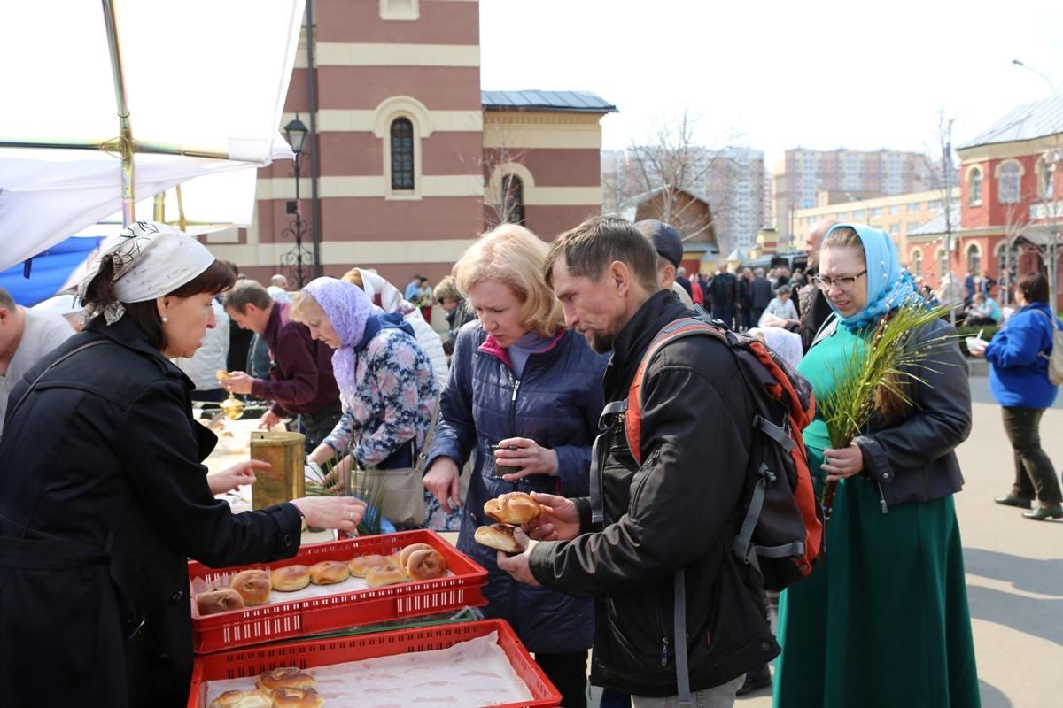По окончании богослужения во дворе храма состоялись народные гулянья. Воскресной школой была организована благотворительная ярмарка. Работала полевая кухня. Угощение по благословению настоятеля приготовили и раздавали сестры милосердия нашего прихода.
