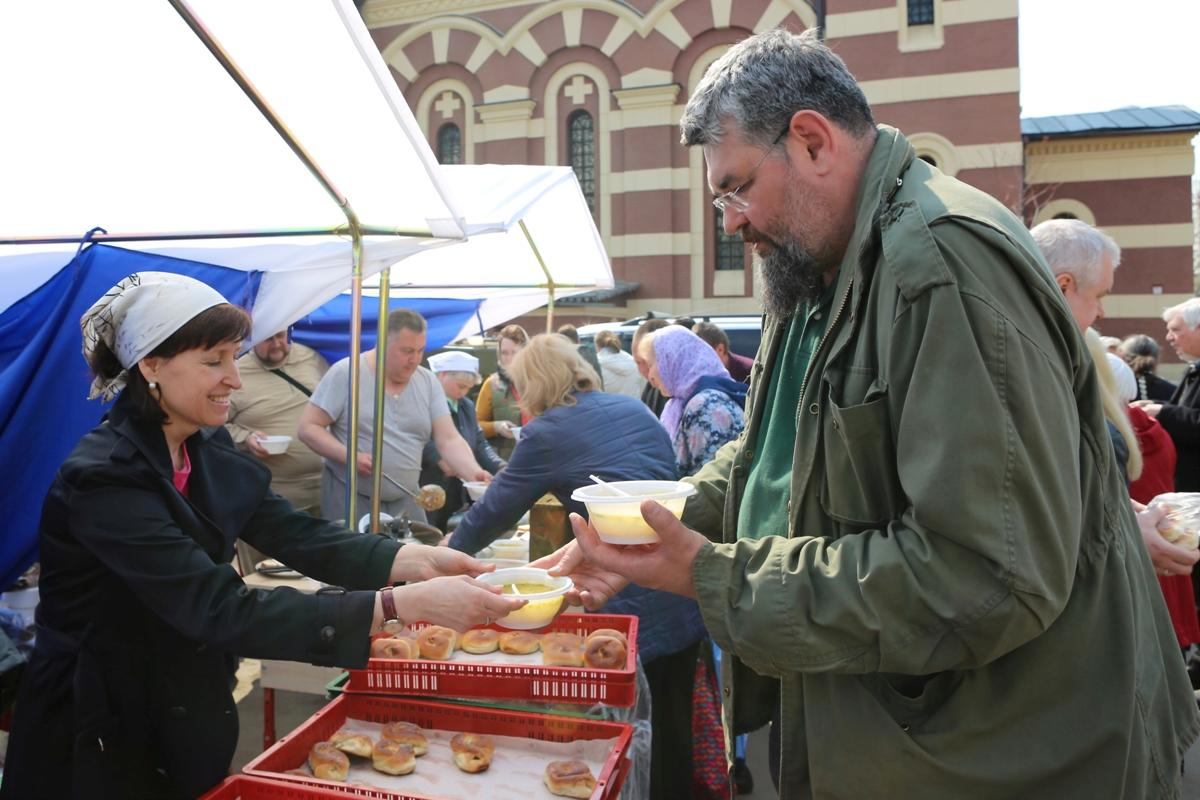 По окончании богослужения во дворе храма состоялись народные гулянья. Воскресной школой была организована благотворительная ярмарка. Работала полевая кухня. Угощение по благословению настоятеля приготовили и раздавали сестры милосердия нашего прихода.
