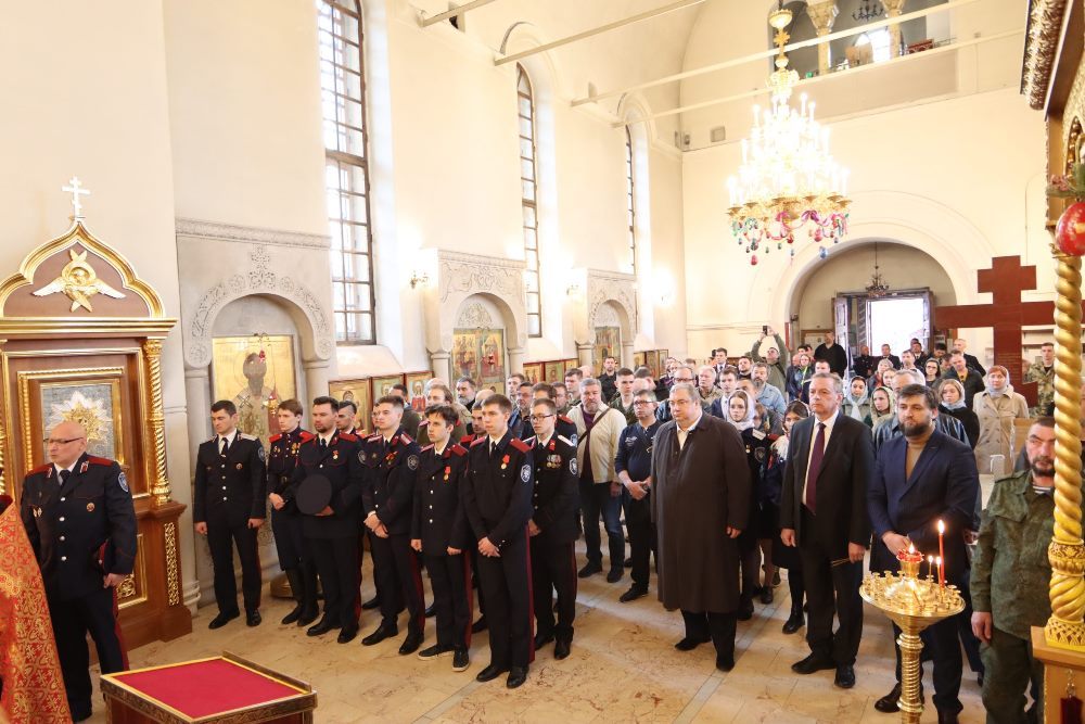 Вместе с духовенством помолиться пришли заместители атамана Всероссийского казачьего общества (ВсКО) Константин Перенижко и Игорь Казарезов вместе с сотрудниками штаба, ректор Первого казачьего университета Сергей Чеботарев вместе с преподавателями и студентами учебной организации, атаман Московского окружного казачьего общества ВКО «ЦКВ» Дмитрий Ковалев вместе со столичным казачеством, представители Союза казачьей молодежи России, представители общественного казачества и прихожане храма.