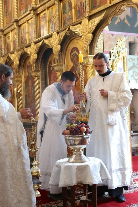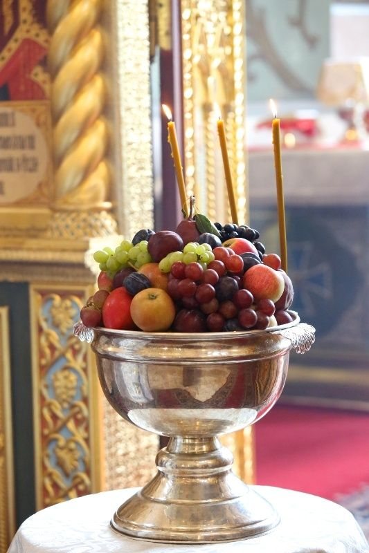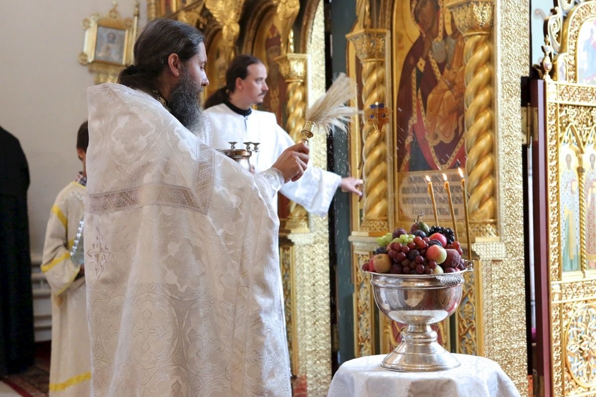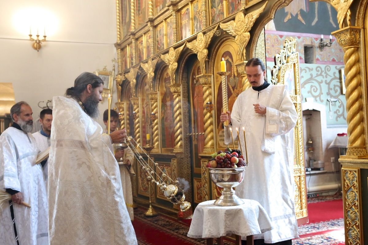 После Божественной литургии протоиерей Иоанн Кудрявцев освятил начатки плодов.