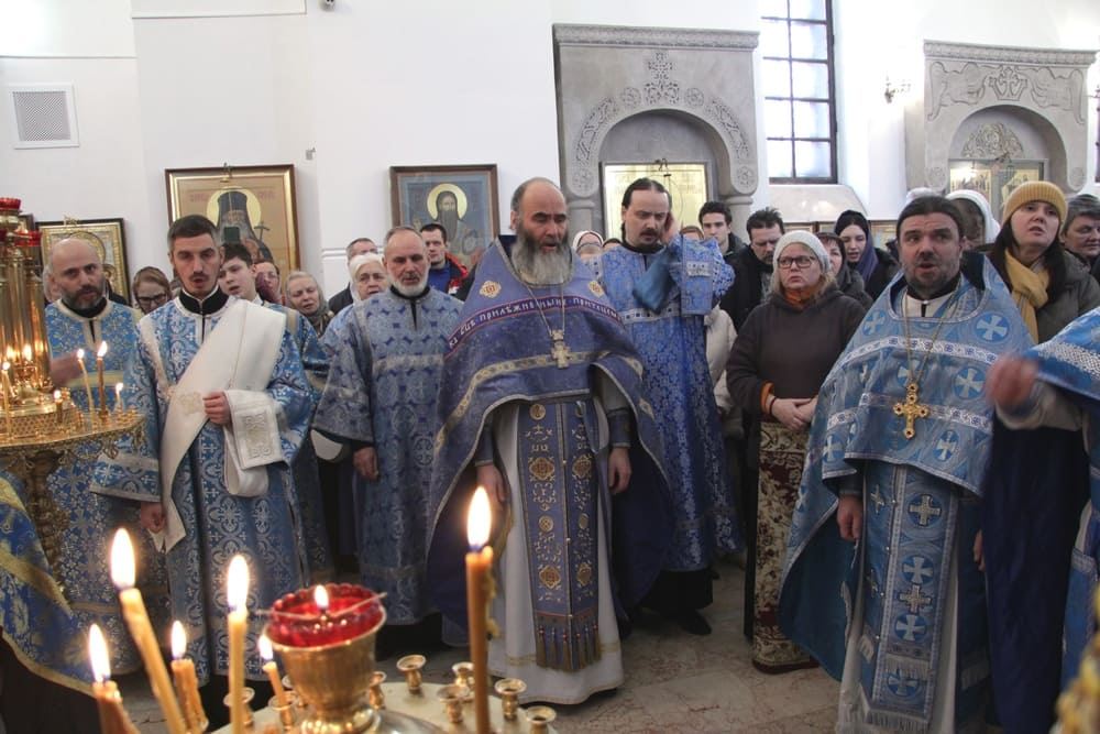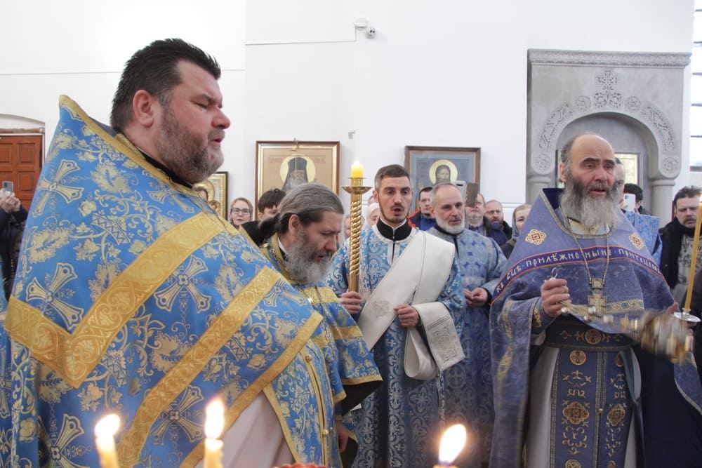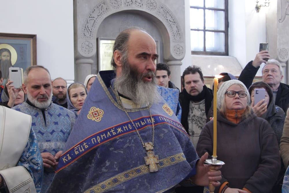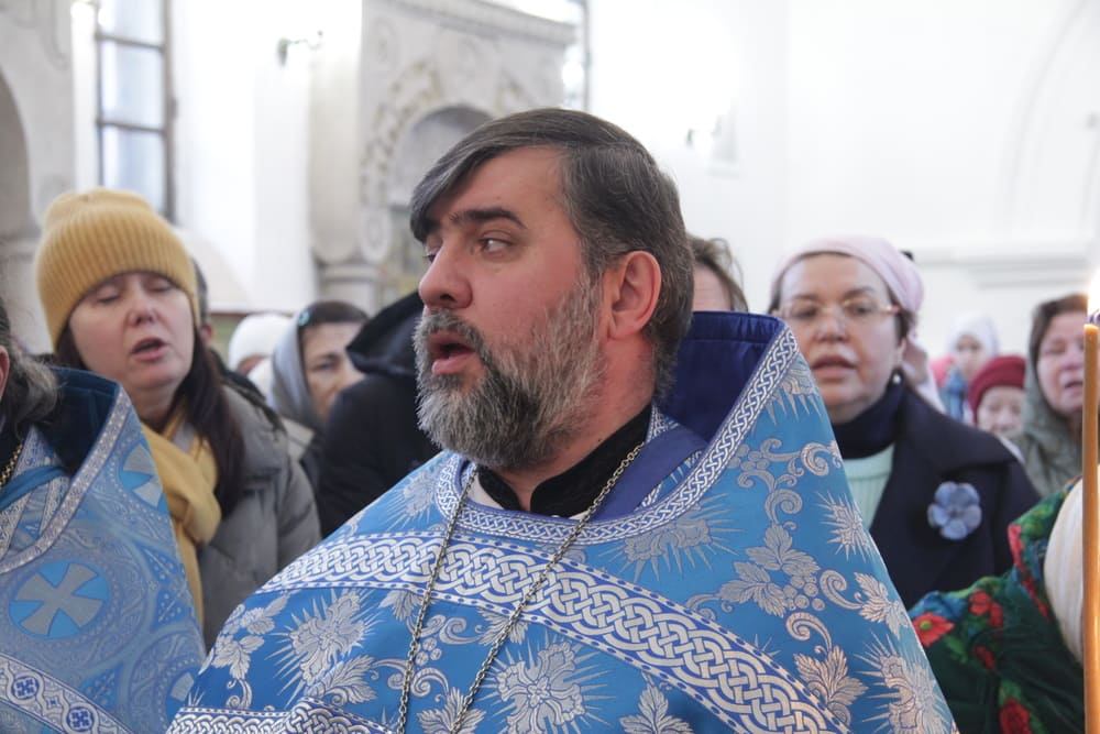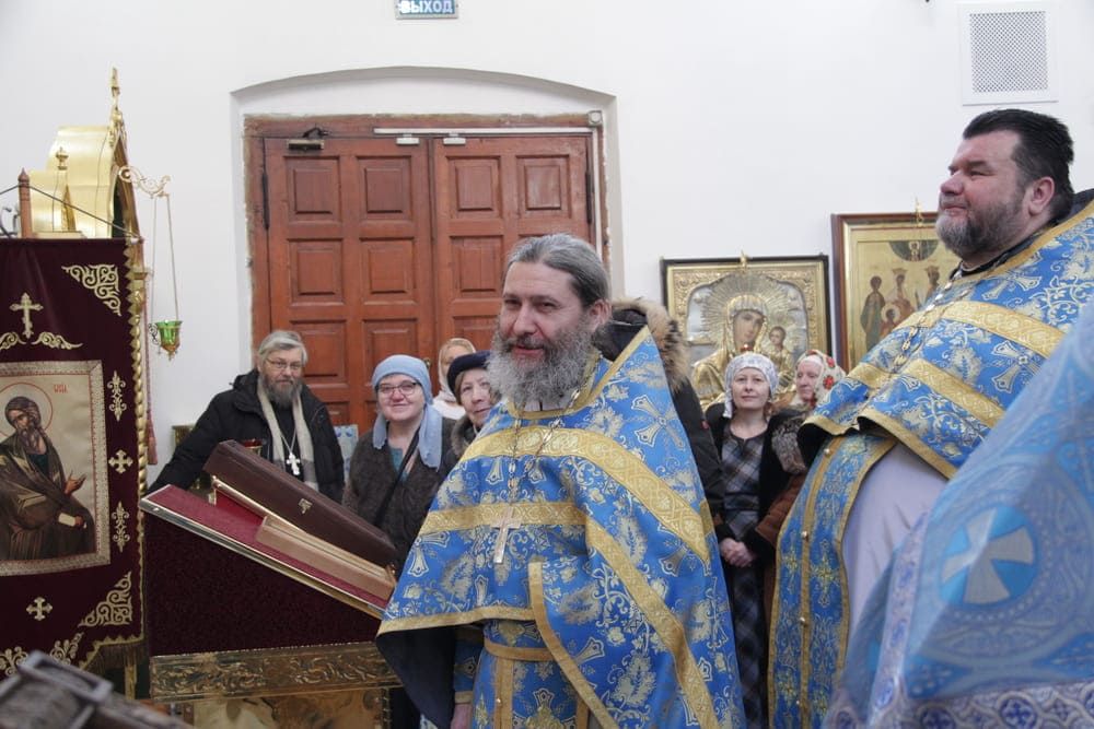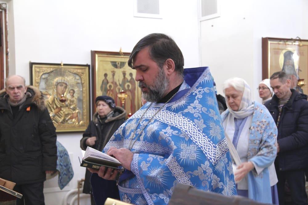 3 февраля 2024 года, в праздник иконы Божией Матери «Отрада и Утешение» («Ватопедская»), протоиерей Сергий Дикий, благочинный Всехсвятского округа г. Москвы, настоятель храма св. вмч. Георгия Победоносца в Коптево, совершил Божественную литургию в храме иконы Божией Матери «Отрада и Утешение» на Ходынском поле г. Москвы.