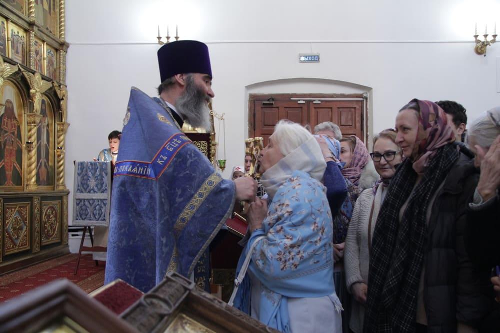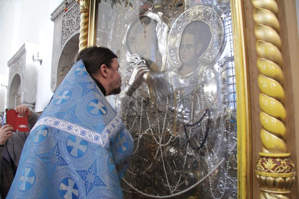 По окончании богослужения было совершено славление чудотворной храмовой иконе Богородицы «Отрада и Утешение». Затем протоиерей Сергий Дикий обратился ко всем присутствующим с пастырским словом.