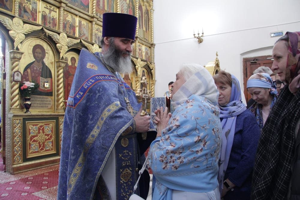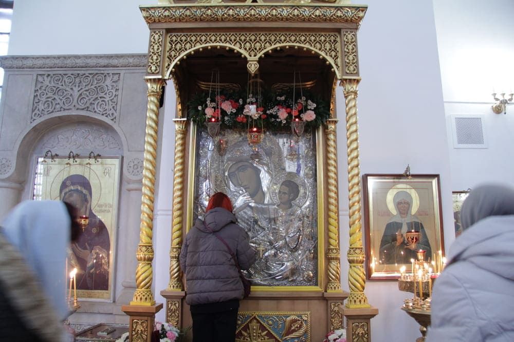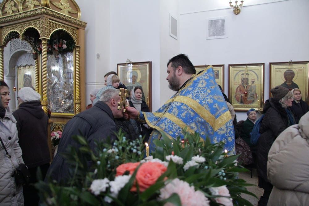 Проповедь перед причастием произнес клирик храма протоиерей Владимир Купарев. Он рассказал прихожанам о событии праздника, о принесении Афонского списка иконы в наш храм и чудотворной помощи нашему храму, происходящей по молитвам к Божией Матери перед иконой Ея «Отрада и Утешение».