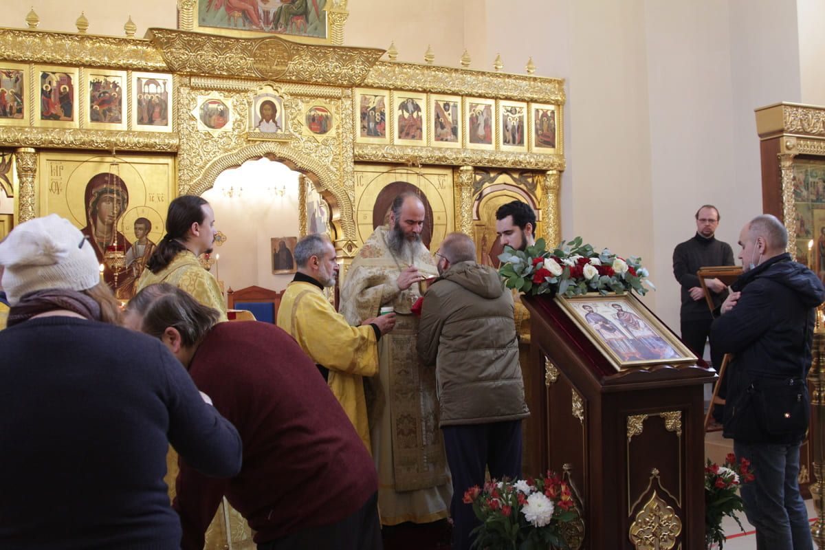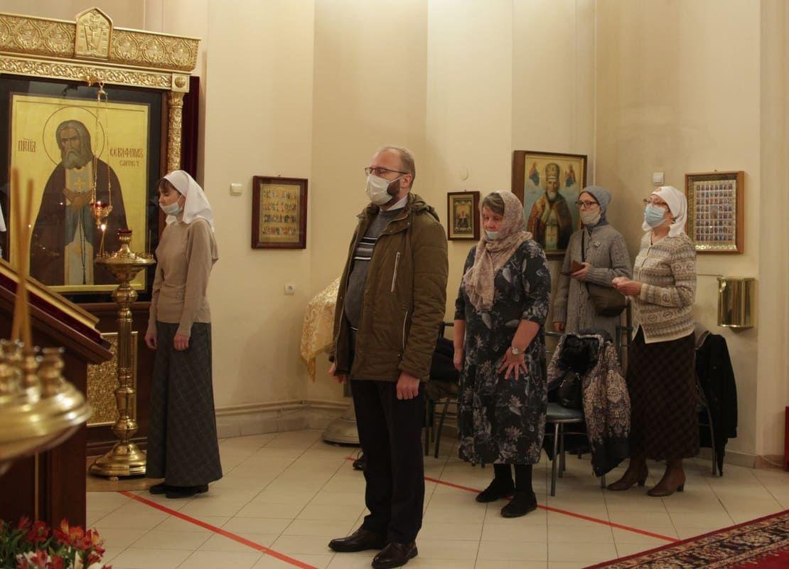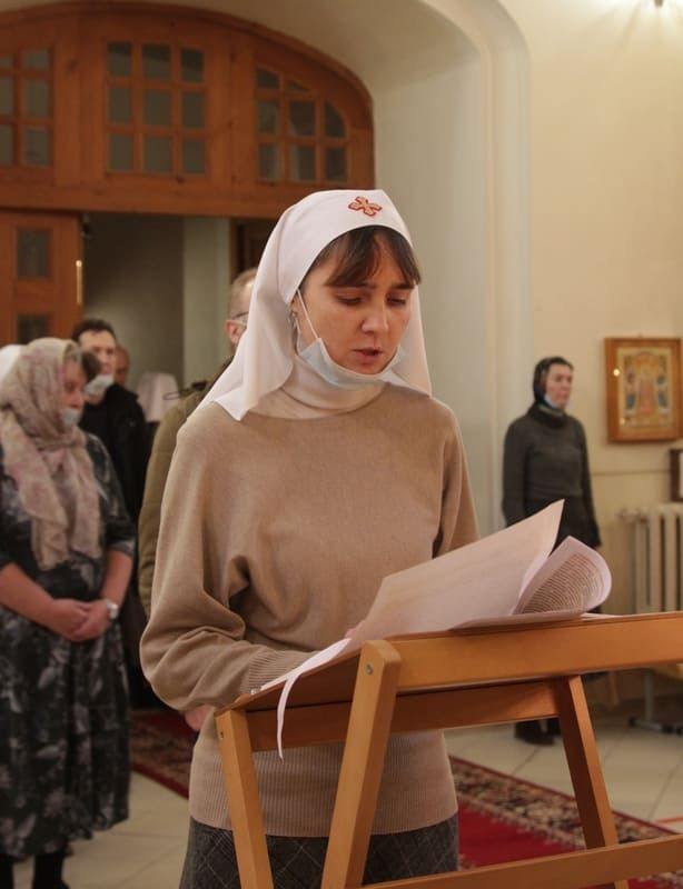 За богослужением молились прихожане и сотрудники храма, в том числе сёстры милосердия.