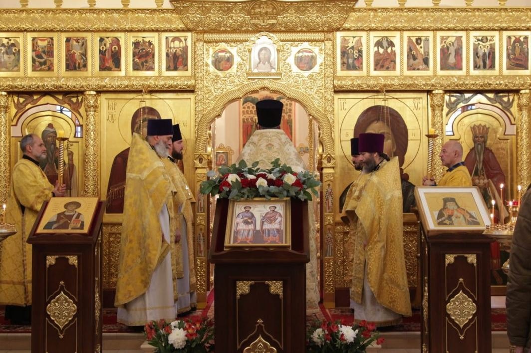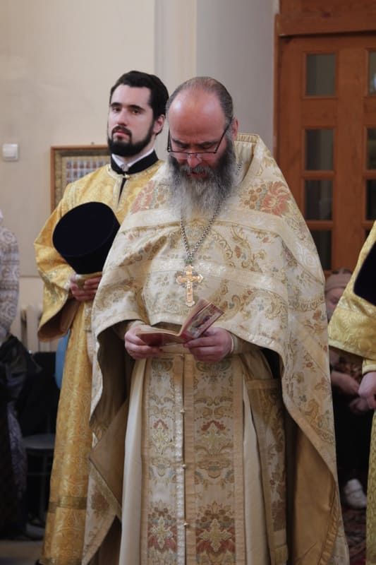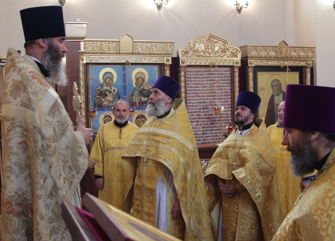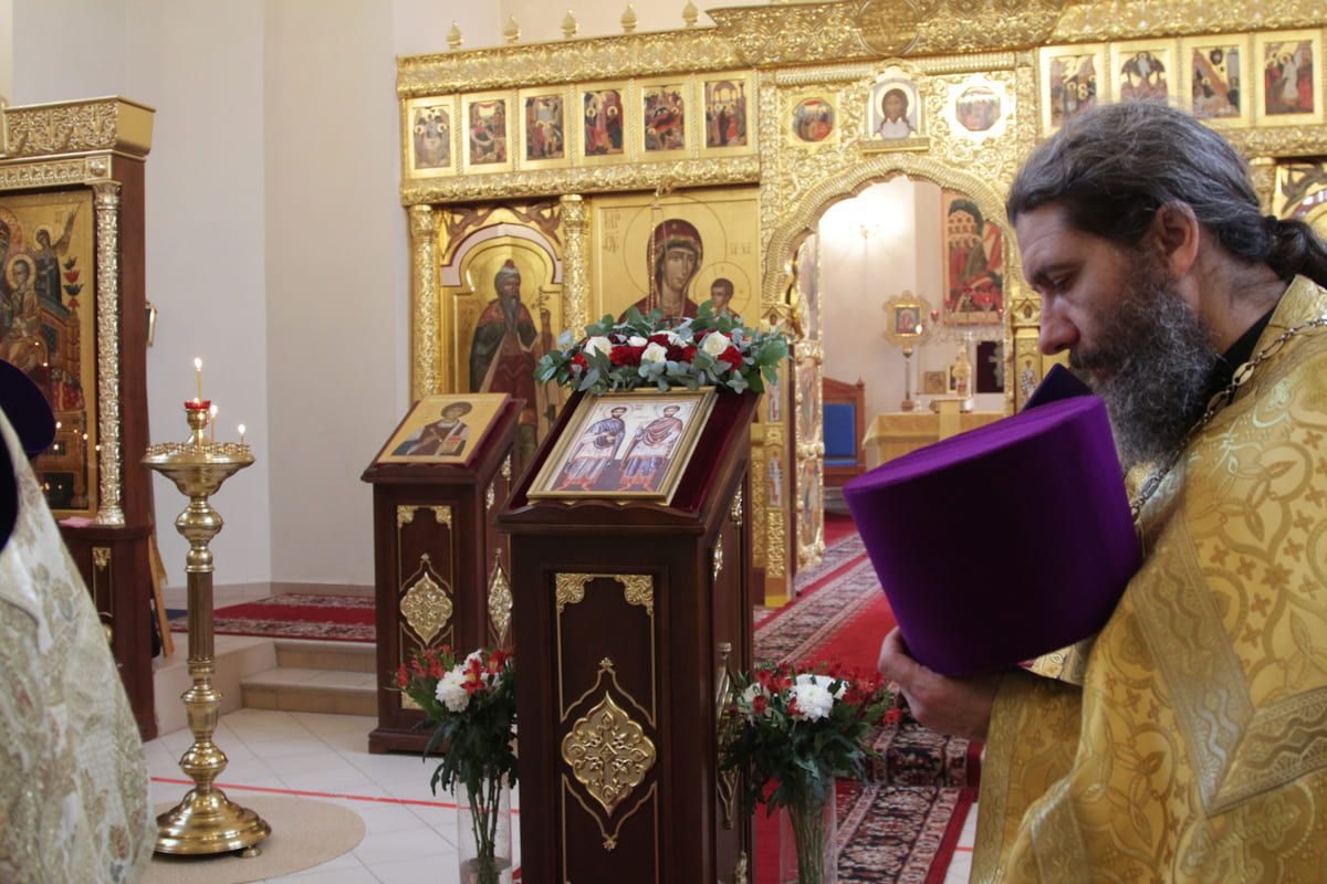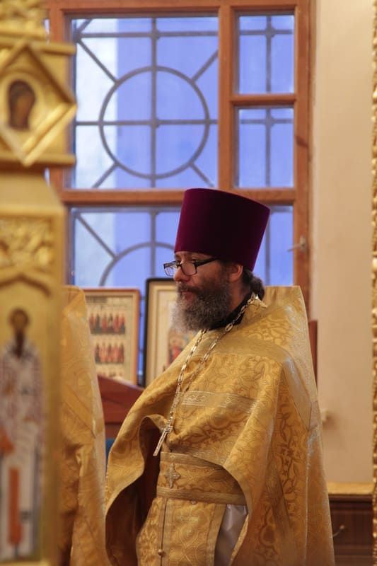 За Божественной литургией отцу-благочинному сослужили: настоятель казачьего храма иконы Божией Матери «Отрада и Утешение» на Ходынском поле г. Москвы протоиерей Иоанн Кудрявцев; настоятель храма прп. Сергия Радонежского на Ходынском поле протоиерей Василий Биксей; ответственный секретарь Синодального комитета по взаимодействию с казачеством иерей Тимофей Чайкин; диакон Александр Гарбуз; приглашенное духовенство.