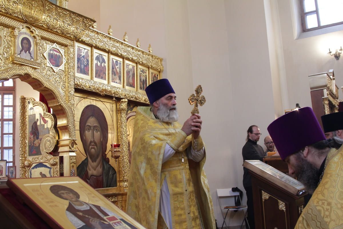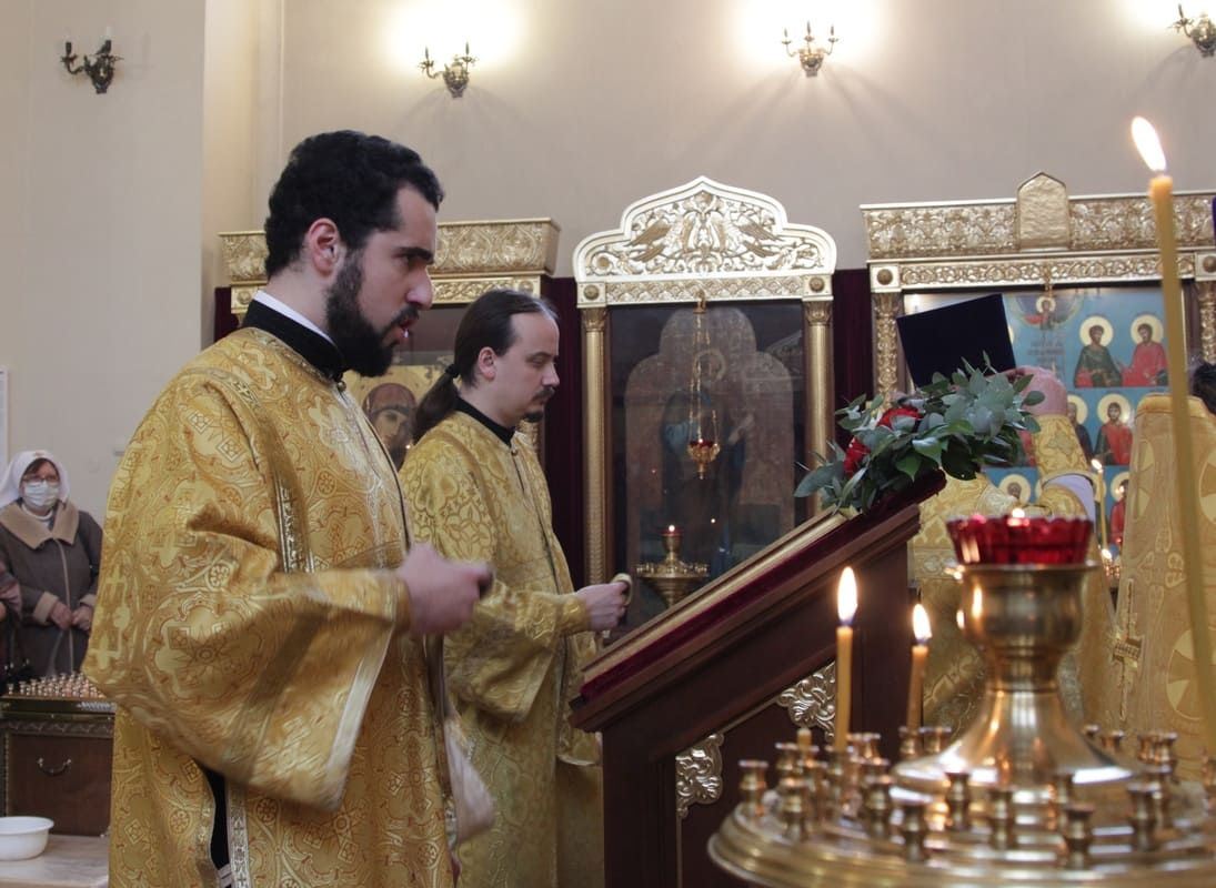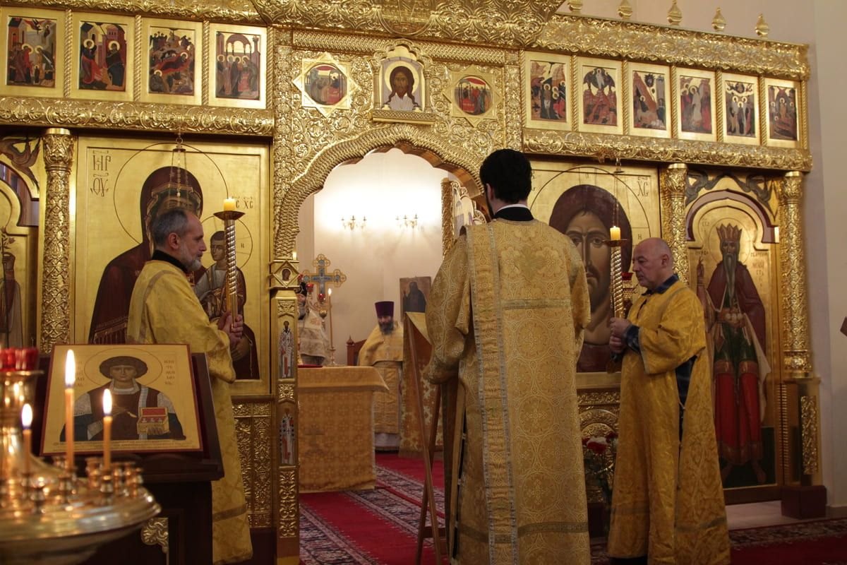 За Божественной литургией отцу-благочинному сослужили: настоятель казачьего храма иконы Божией Матери «Отрада и Утешение» на Ходынском поле г. Москвы протоиерей Иоанн Кудрявцев; настоятель храма прп. Сергия Радонежского на Ходынском поле протоиерей Василий Биксей; ответственный секретарь Синодального комитета по взаимодействию с казачеством иерей Тимофей Чайкин; диакон Александр Гарбуз; приглашенное духовенство.