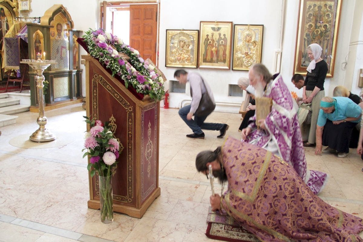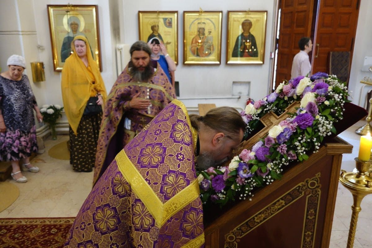 23 июня 2024 года, в праздник Святой Троицы, настоятель храма иконы Божией Матери "Отрада и Утешение" на Ходынском поле протоиерей Иоанн Кудрявцев совершил Божественную литургию и вечерню с чтением коленопреклоненных молитв.
