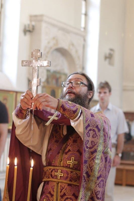 14 августа 2017 года, в праздник произнесения Честных Древ Животворящего Креста Господня, настоятель храма иконы Божией Матери «Отрада и Утешение» на Ходынском поле г. Москвы протоиерей Иоанн Кудрявцев совершил Божественную литургию, а накануне вечером вечерню и утреню с выносом Креста Господня.