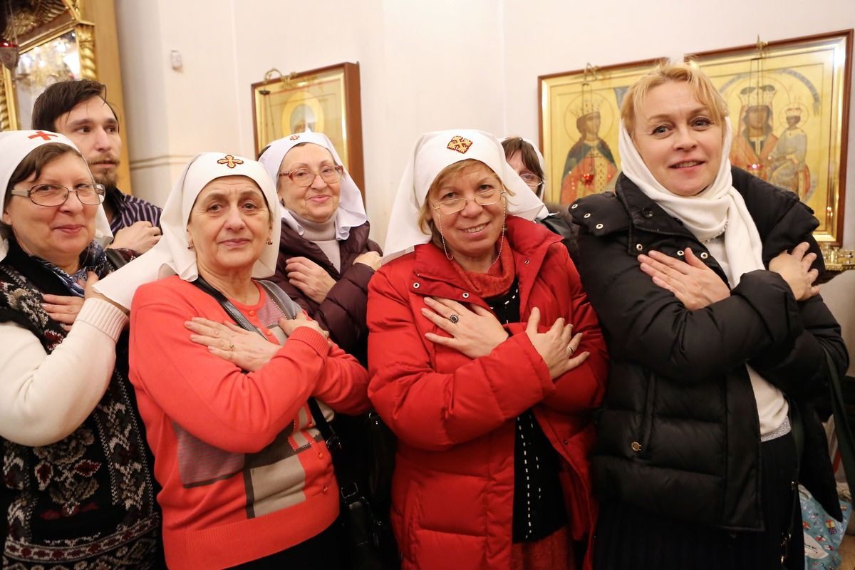 За богослужением молились казаки, сотрудники и прихожане храма, пациенты Боткинской больницы.