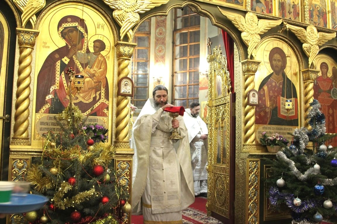 За богослужением молились московские казаки, прихожане, сотрудники храма и сёстры милосердия. Исповедь совершал протоиерей Владимир Купарев. По окончании Божественной литургии иерей Тимофей Чайкин огласил Рождественское послание Патриарха Московского и всея Руси Кирилла.