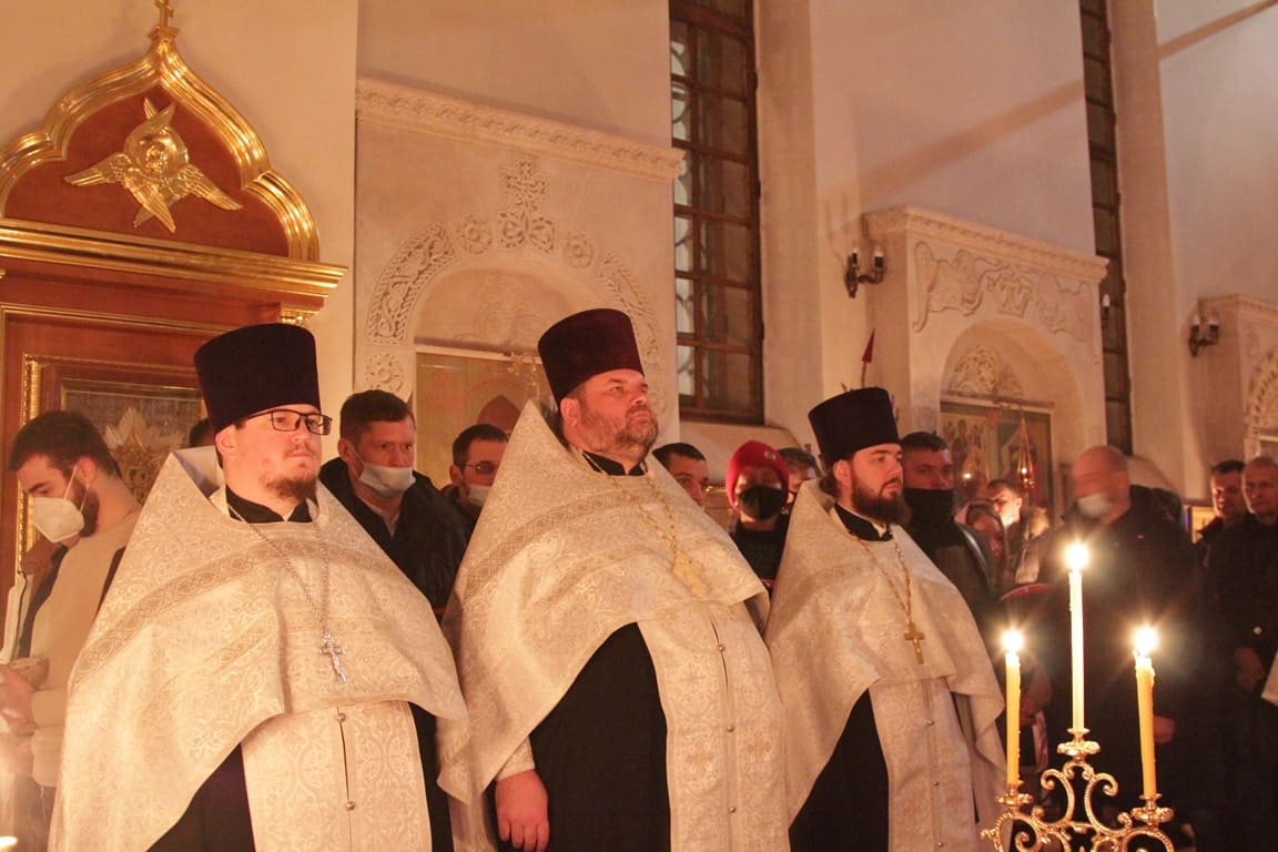 Всенощное бдение и Божественную литургию возглавил настоятель храма протоиерей Иоанн Кудрявцев. Отцу-настоятелю сослужили клирики храма: ответственный секретарь Синодального комитета по взаимодействию с казачеством иерей Тимофей Чайкин; протоиерей Сергий Рождественский; протоиерей Борис Ланчиков; руководитель отдела по взаимодействию с епархиями и органами власти Синодального комитета по взаимодействию с казачеством иерей Иоанн Малков; диакон Александр Гарбуз.