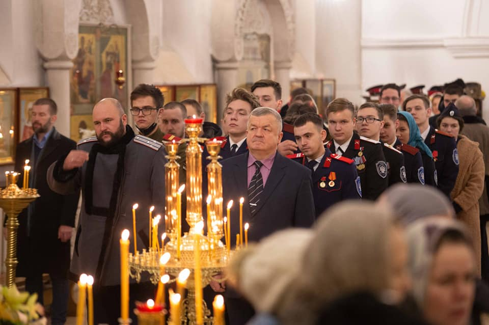За богослужениями молились: врио ректора Первого казачьего университета Сергей Чеботарев, прихожане храма, студенты-казаки.