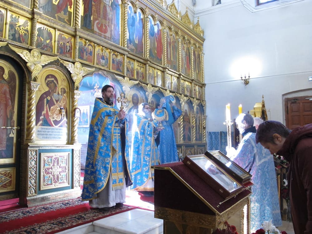 Перед причащением мирян за поздней литургией диакон Александр Гарбуз огласил Послание Святейшего Патриарха Московского и всея Руси Кирилла в честь Дня православной молодежи.