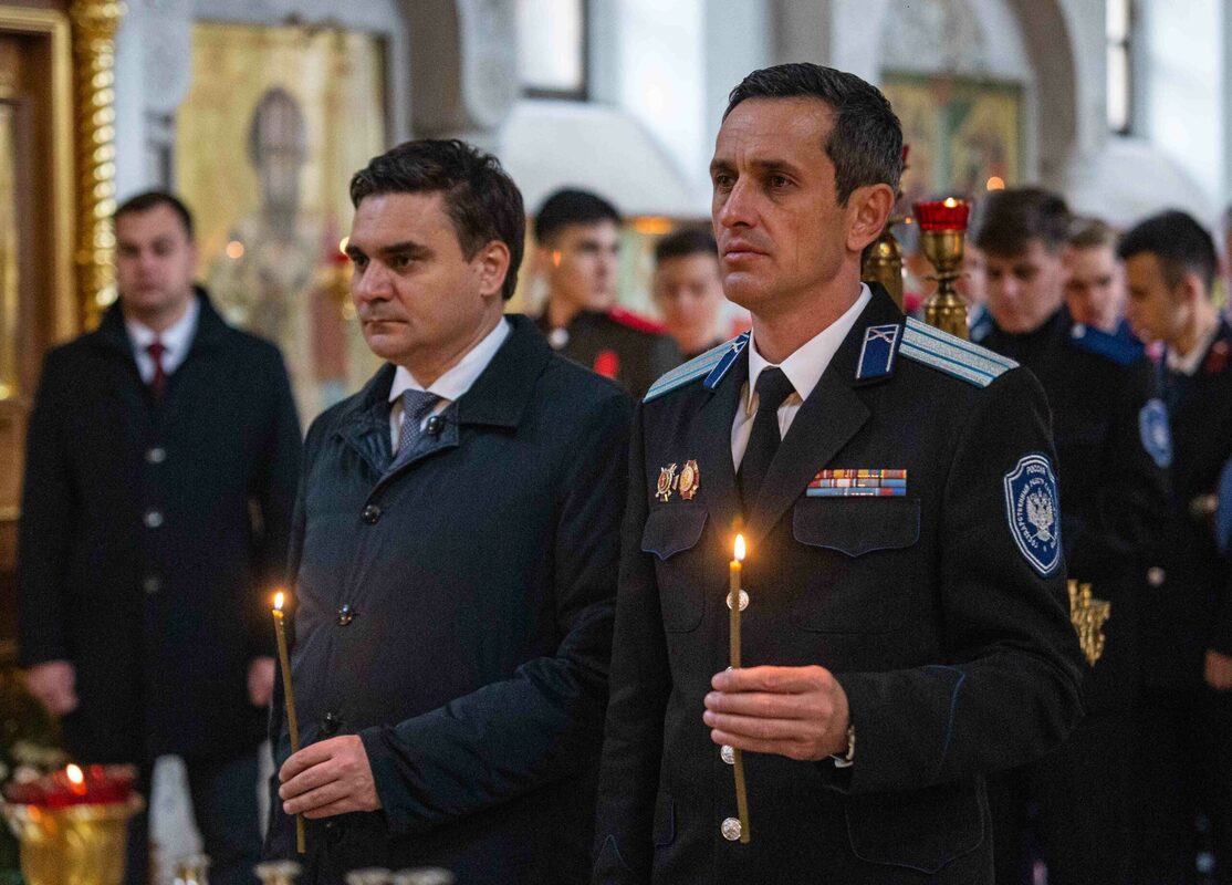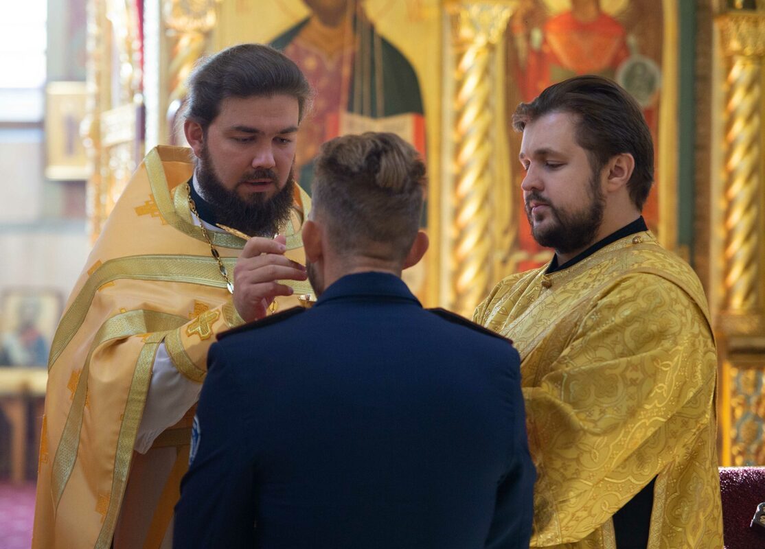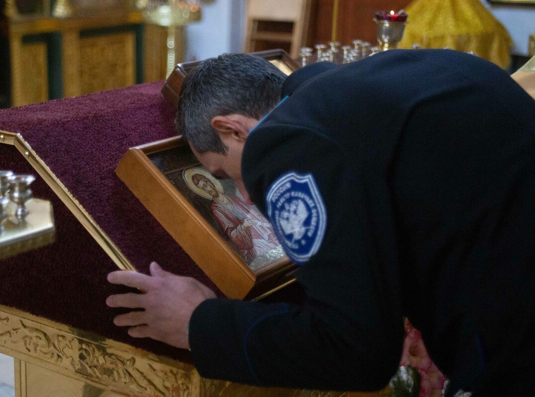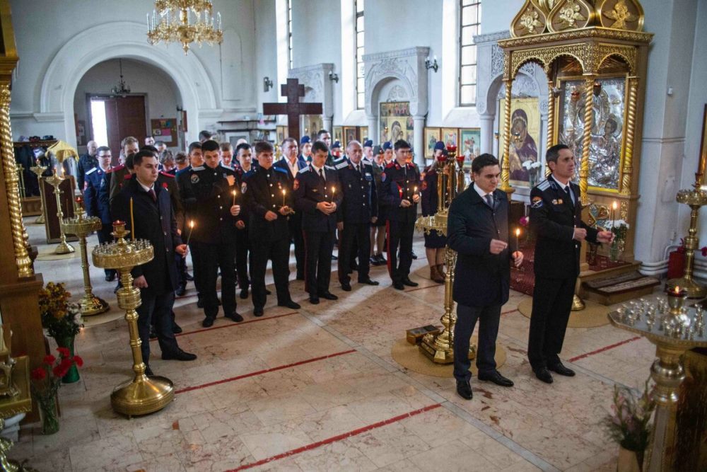 Помолиться за богослужением пришли атаман Терского казачьего войска, помощник полномочного представителя Президента РФ в Северо-Кавказском федеральном округе Виталий Кузнецов, ректор Первого казачьего университета Сергей Чеботарев, атаман посольской станицы Терского казачьего войска в Санкт-Петербурге и ЛО Олег Захаренко, а также казаки, студенты и прихожане храма. Примечательно, что разделить войсковой праздник помимо терцев пришли также представители иных казачьих войск – Кубанского, Донского, Центрального, Оренбургского, Семиреченского и других.