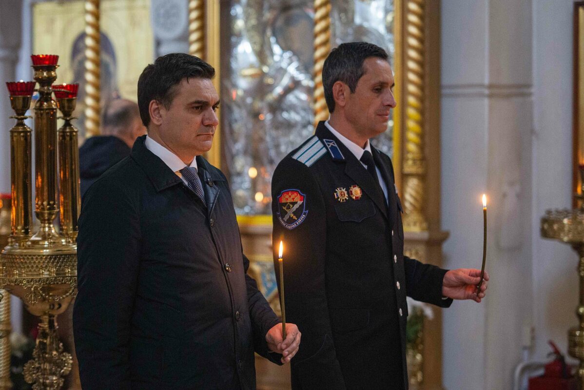 После богослужения отец Тимофей огласил поздравление председателя Синодального комитета митрополита Кирилла. «Казаки на Кавказе уже несколько столетий несут самоотверженное служение. Находясь в состоянии постоянной опасности, терцы сумели взрастить удивительную веру, легендарную храбрость и несломимую силу духа. Это не удивительно, ведь на долю предков выпало немало испытаний – от постоянных набегов горцев и неспокойного соседства с турками до страшных репрессий советского периода, когда преступным было само имя казака», – отметил архипастырь.