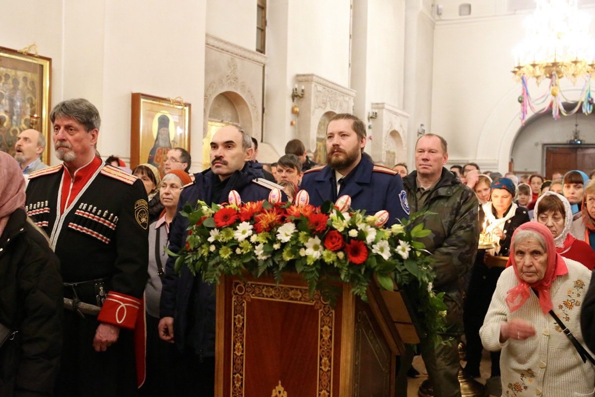 Богослужения возглавил настоятель казачьего храма протоиерей Иоанн Кудрявцев. Его Высокопреподобию сослужили клирики храма: протоиерей Димитрий Шумов; протоиерей Сергий Рождественский, протоиерей Владимир Купарев; иерей Тимофей Чайкин, ответственный секретарь Синодального комитета по взаимодействию с казачеством; иерей Иоанн Малков, специалист отдела по работе с епархиями и органами государственной власти Синодального комитета; иерей Александр Туманов; диакон Михаил Ремезов.
