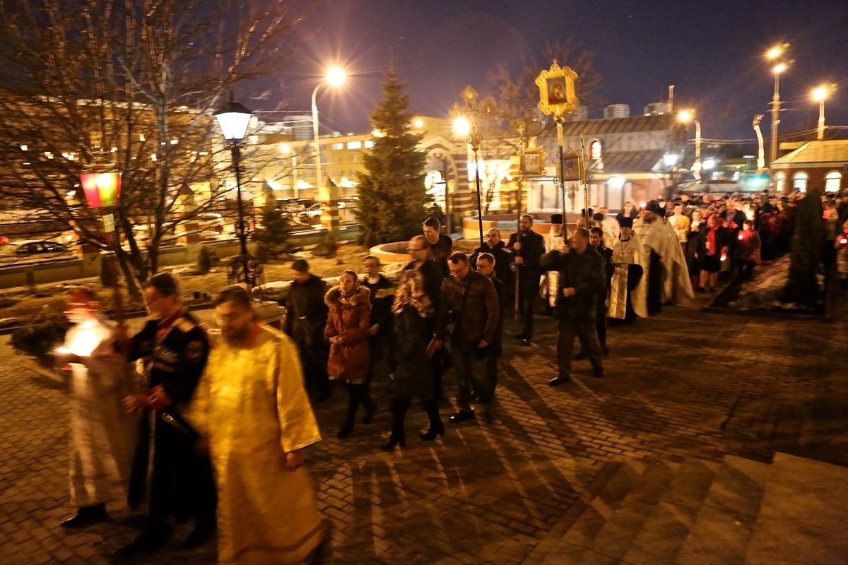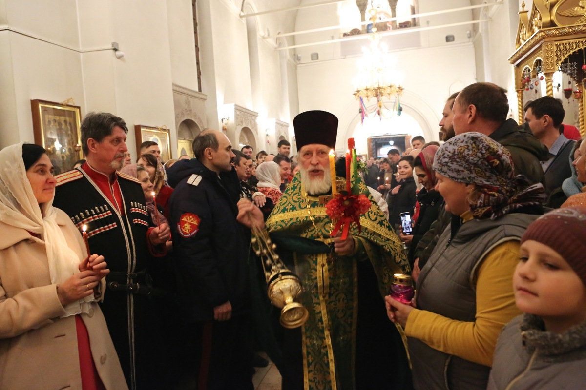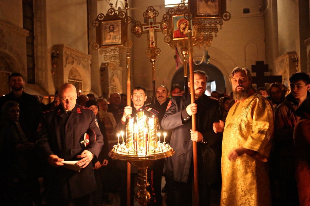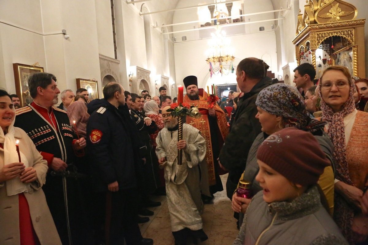За Пасхальной заутреней иерей Тимофей Чайкин, ответственный секретарь Синодального комитета по взаимодействию с казачеством, прочитал Слово огласительное святителя Иоанна Златоуста на Святую Пасху.